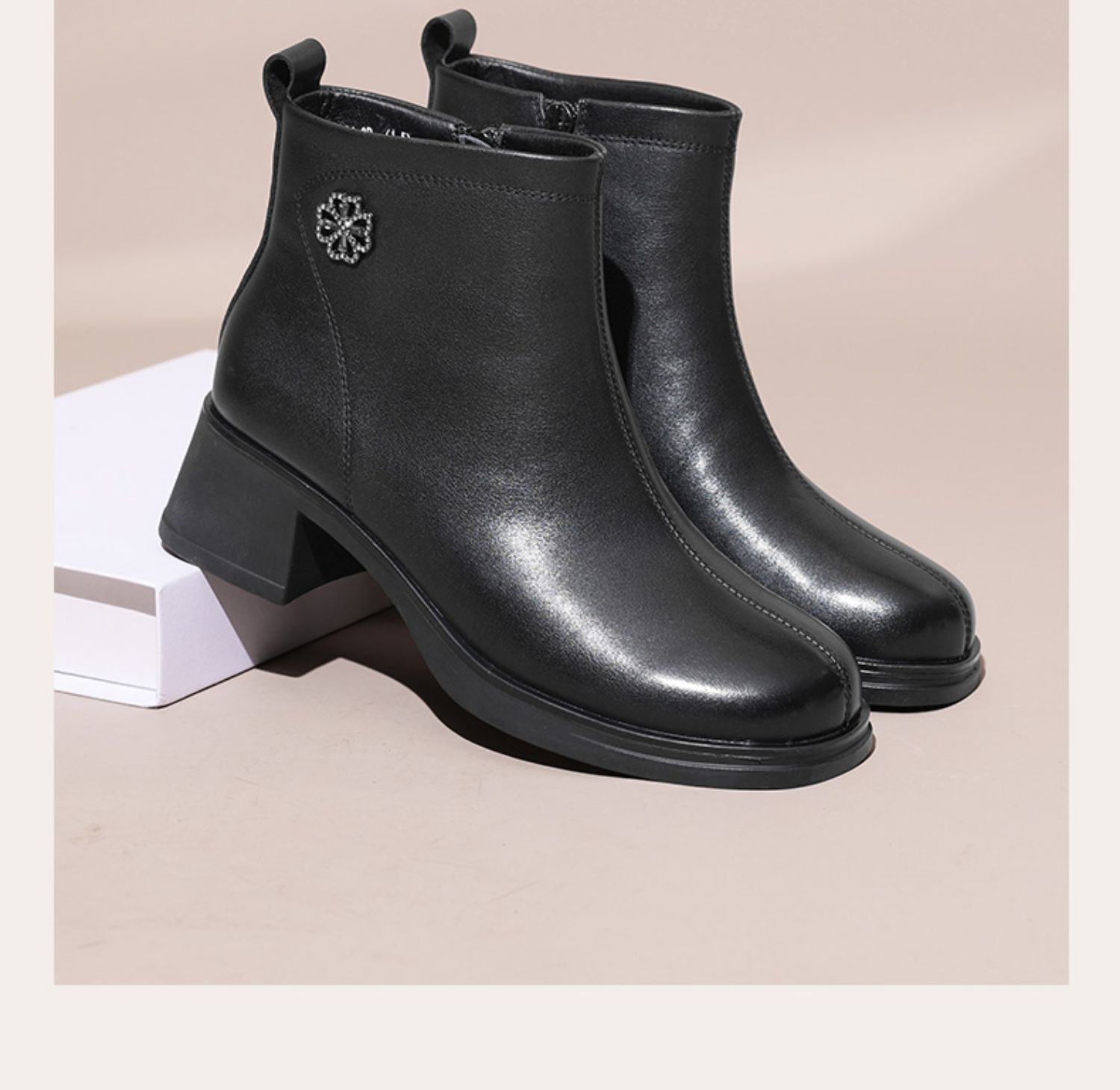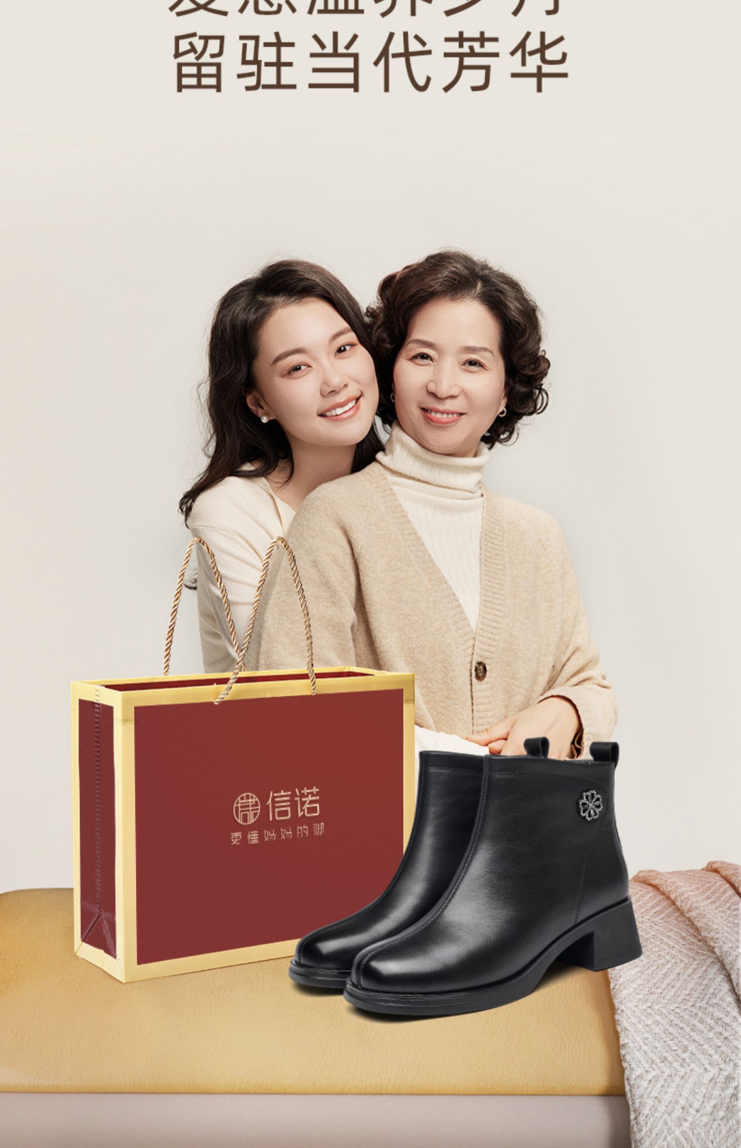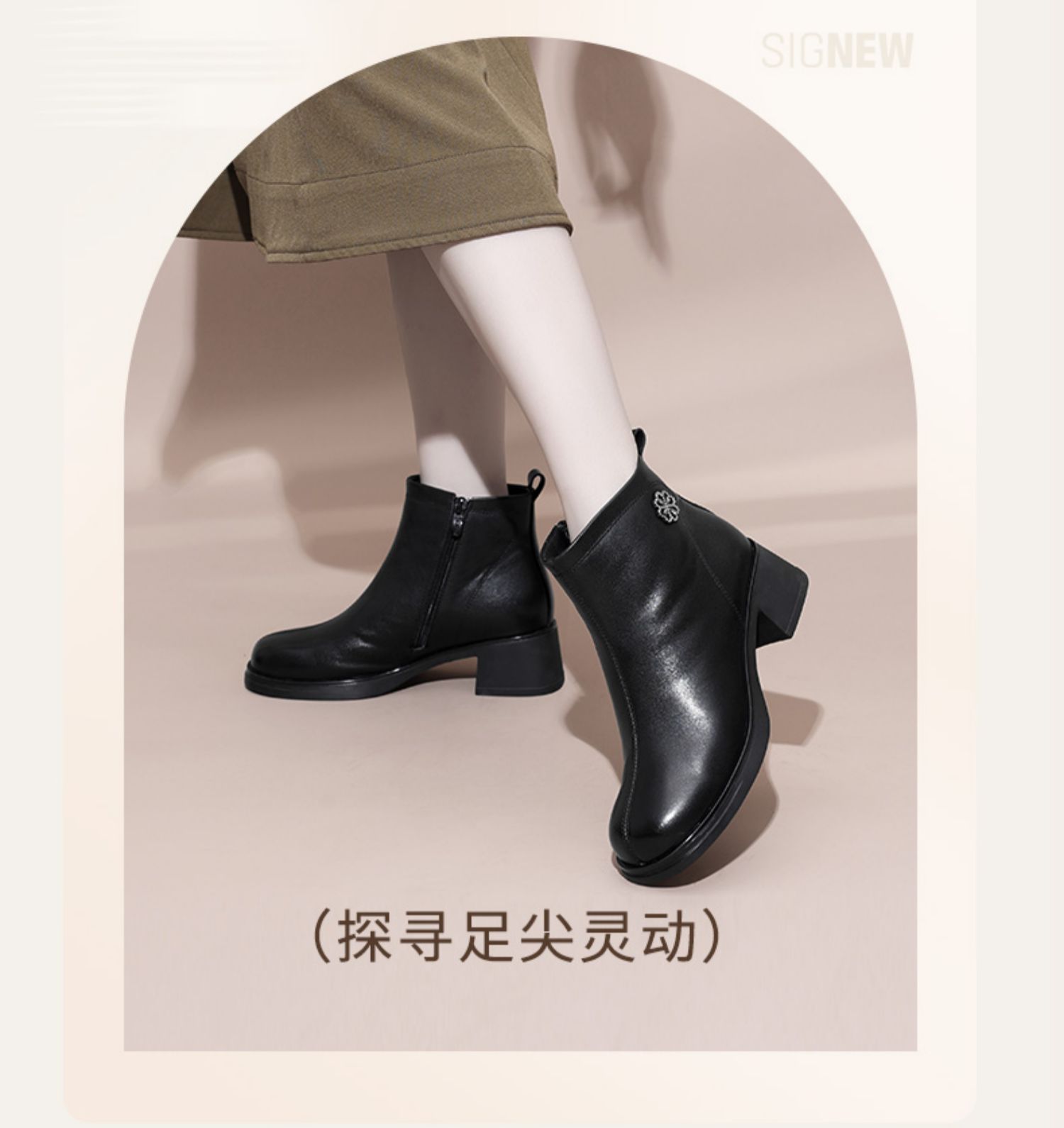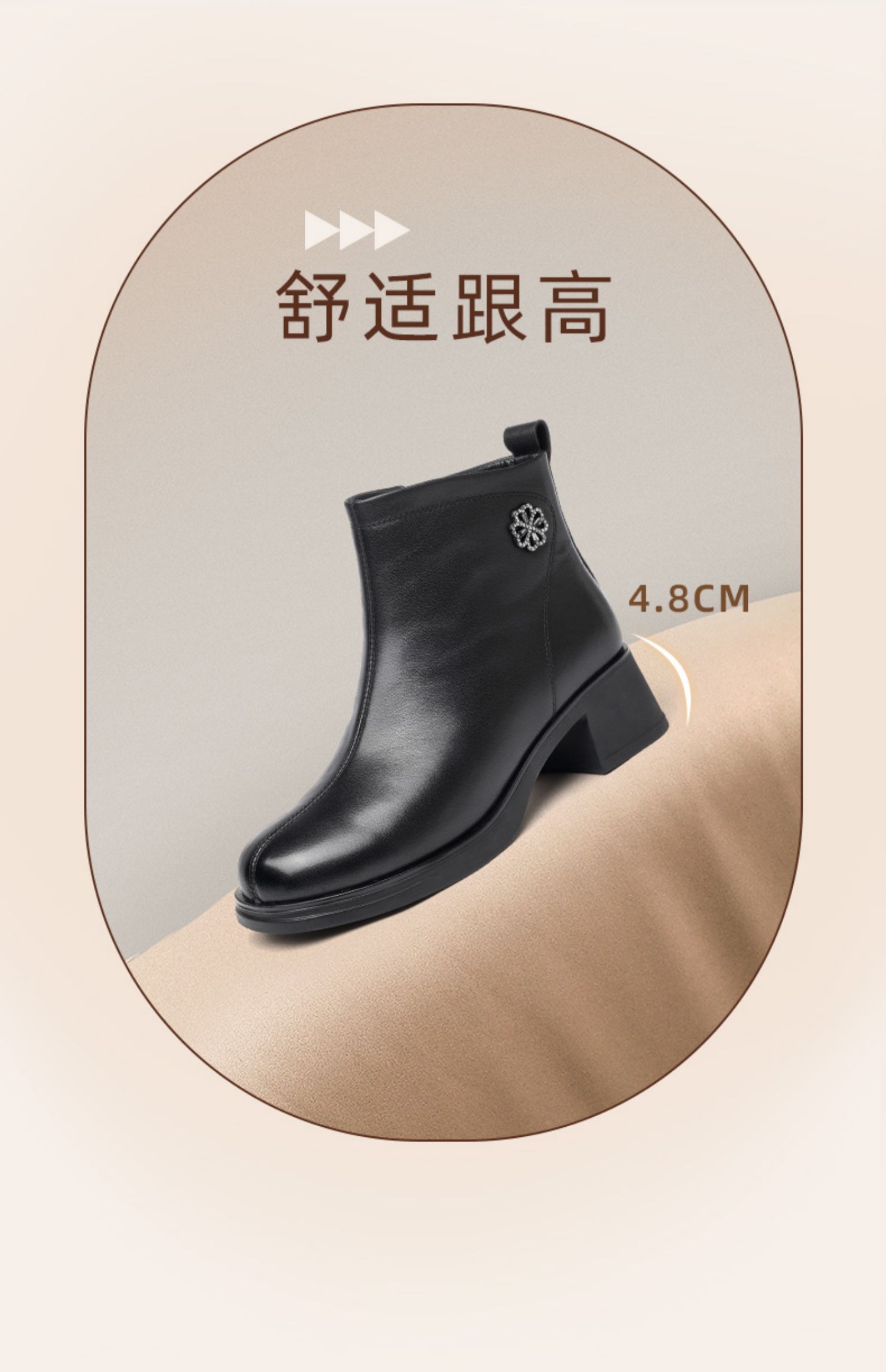 信诺粗跟厚底女士短靴真皮加绒女鞋冬季新款短筒靴子妈妈棉鞋皮鞋M321-3D