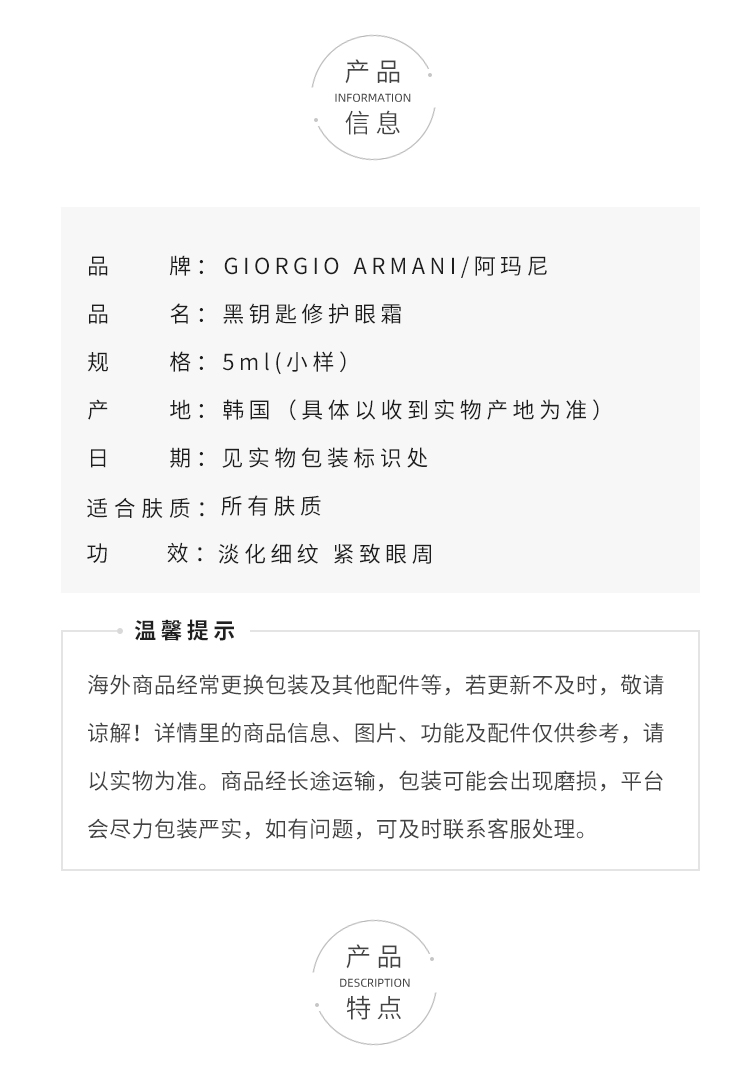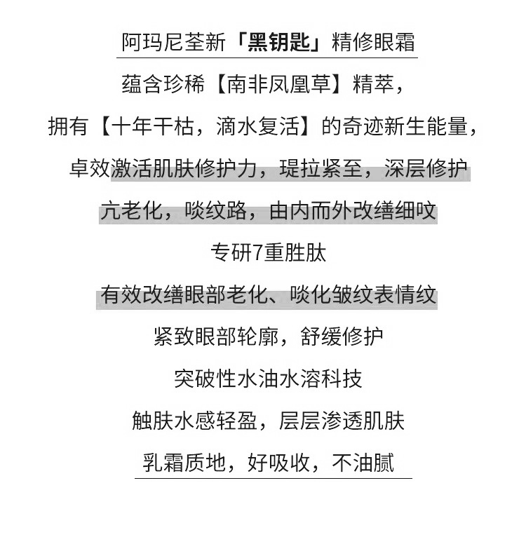 阿玛尼黑曜石眼霜 淡化细纹黑眼圈眼袋修护紧致滋润 小样5ml