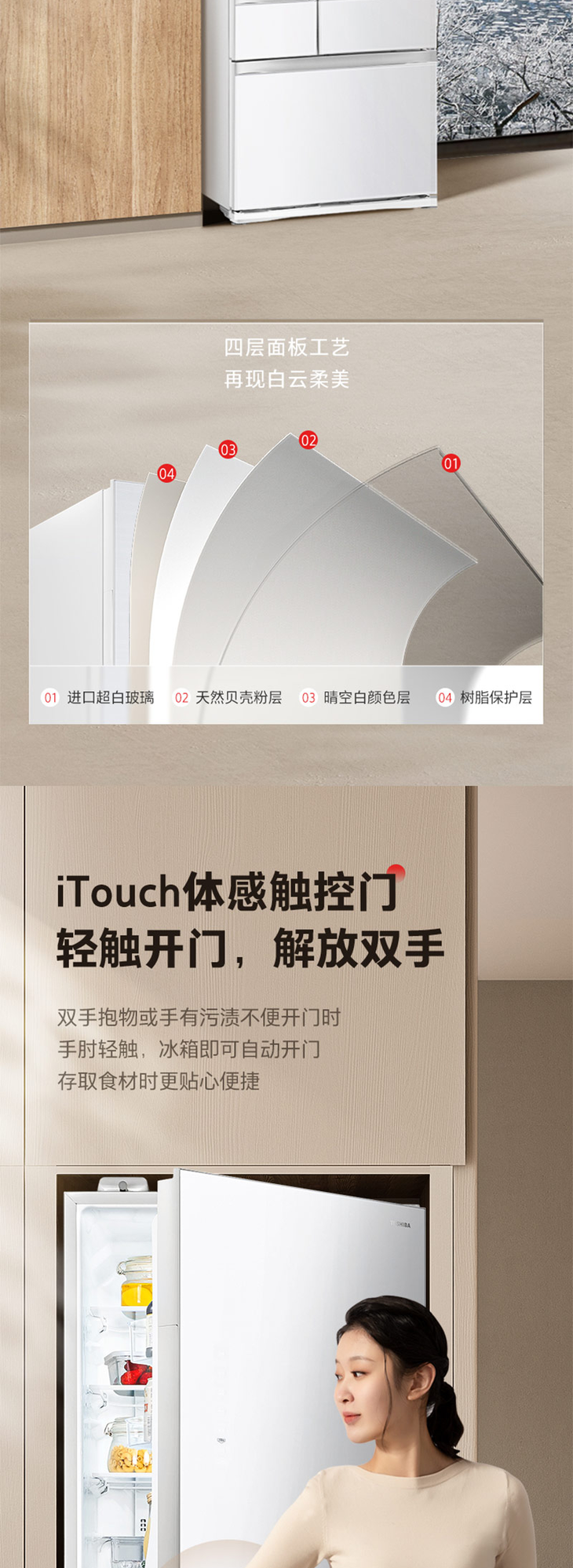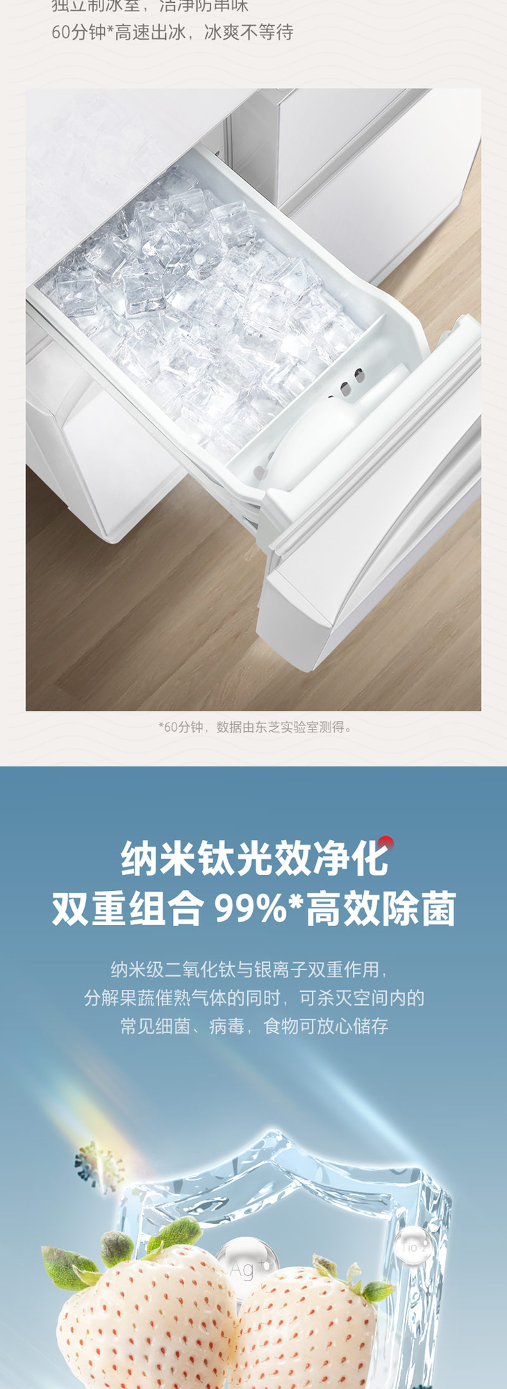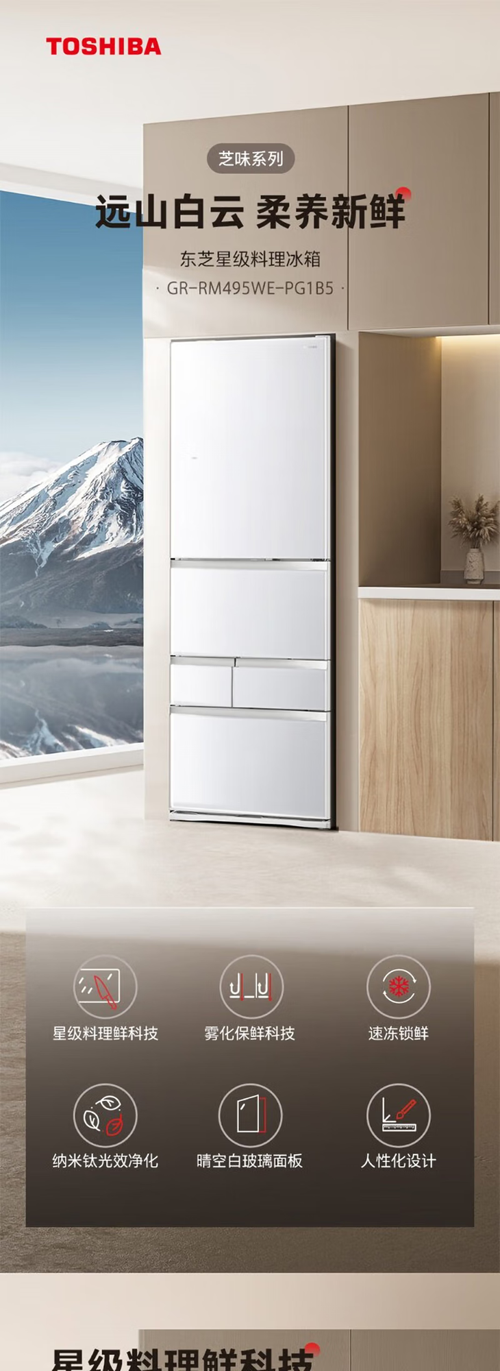 东芝(TOSHIBA)(12979)471升多门变频冰箱 制冰风冷无霜一级能效 雾化保鲜速冻锁鲜 体感触控门 GR-RM495WE-PG1B5