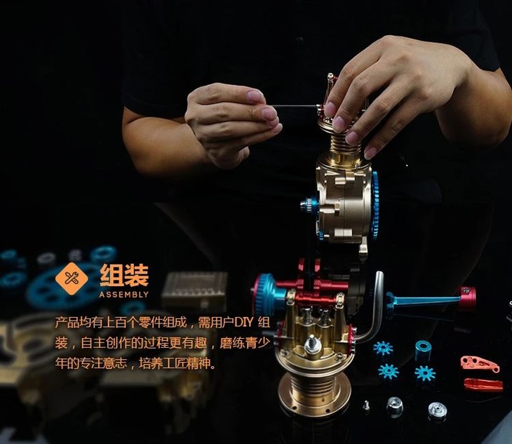 TECHIN/土星 单缸凸轮顶置发动机 金属拼装模型
