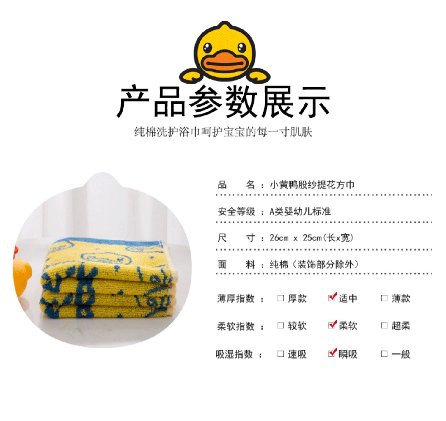 B.Duck小黄鸭小方巾25*25cm 050