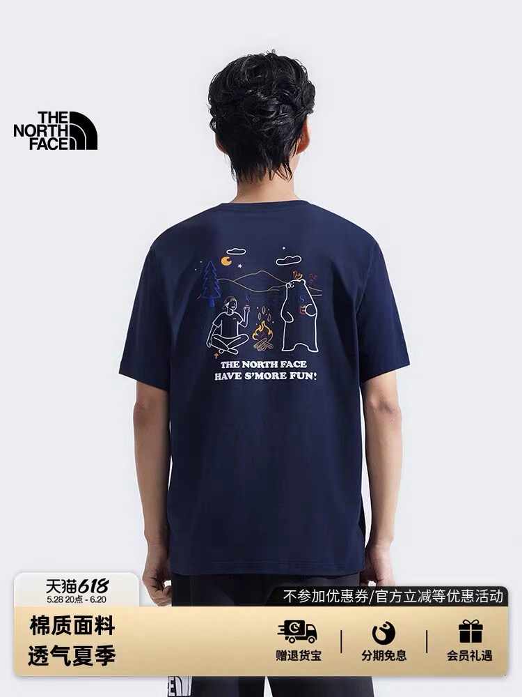 TNF新款趣味印花圆领短袖T恤,棉质面料柔软舒适,胸前和背面精致LOGO和印花图案!