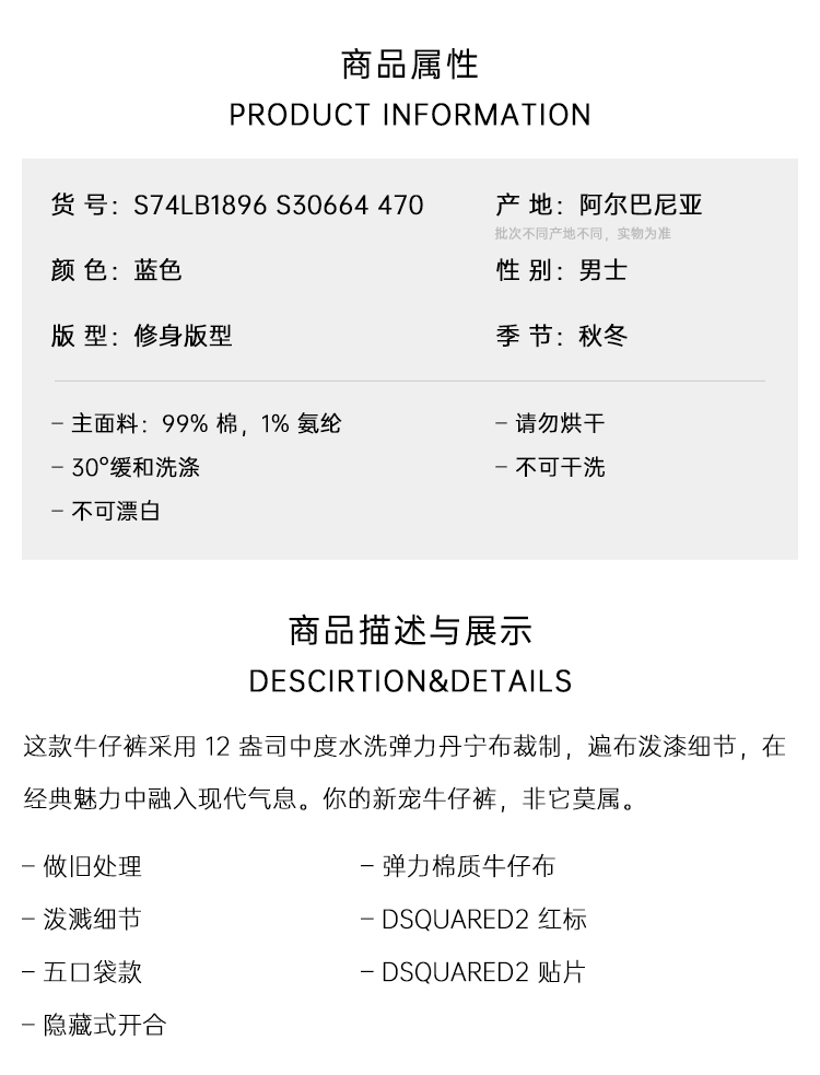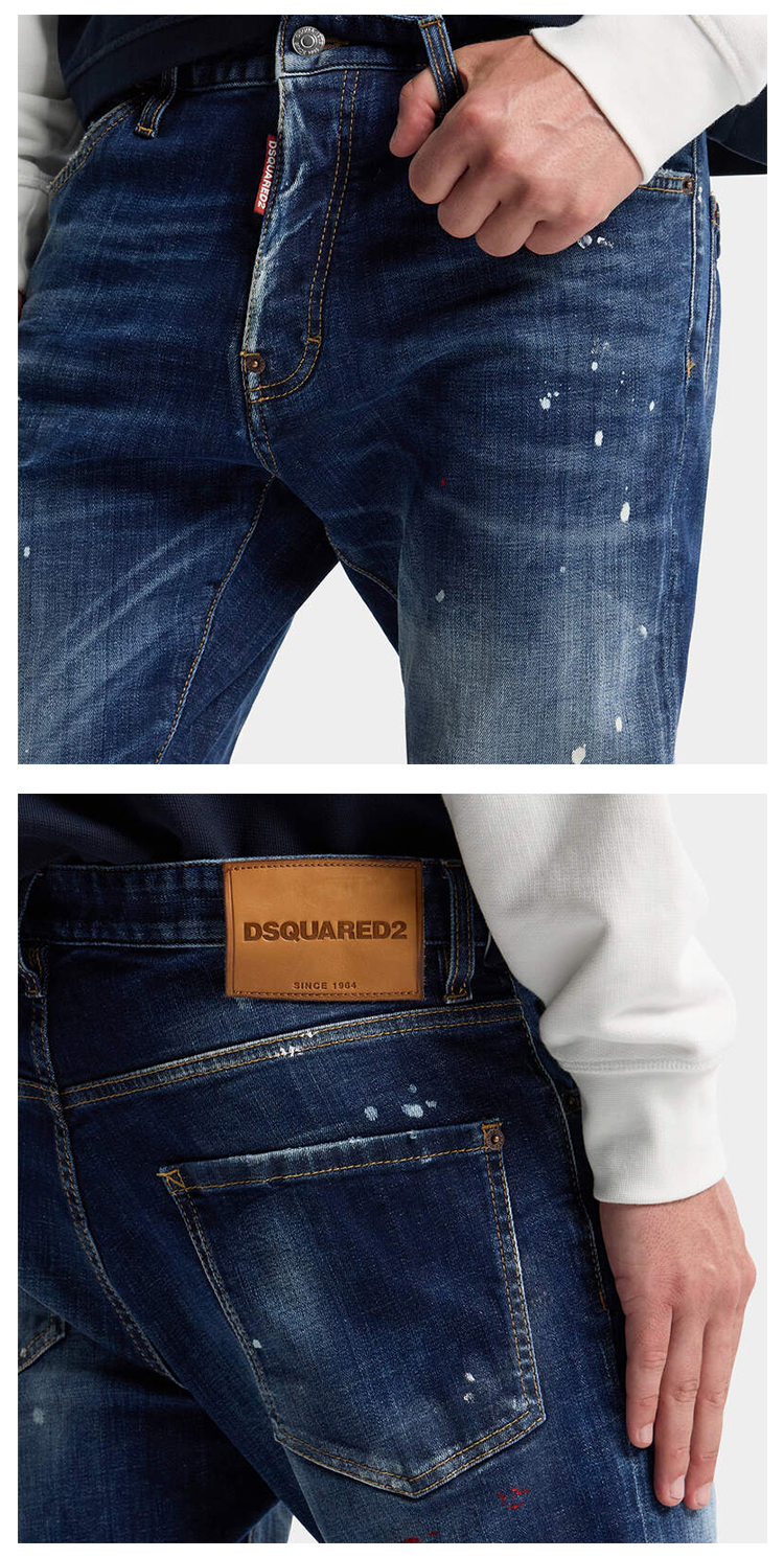 DSQUARED2 男士字母徽标贴片水洗Teddy牛仔裤 蓝色 S74LB1896 S30664 470