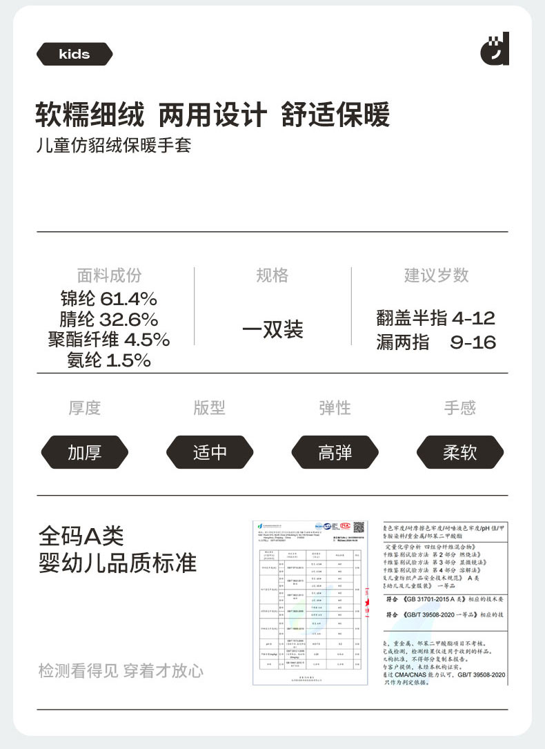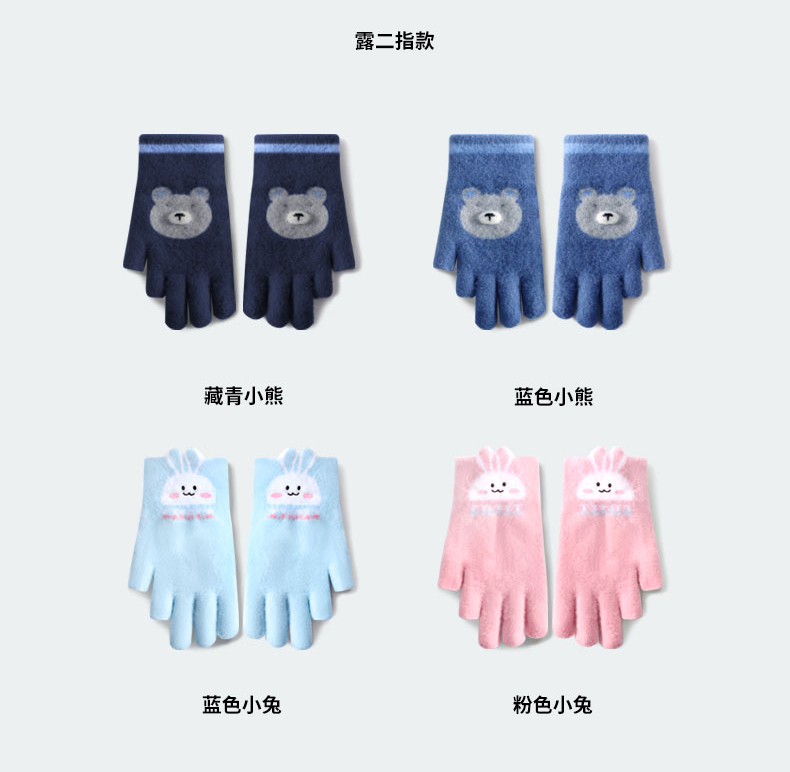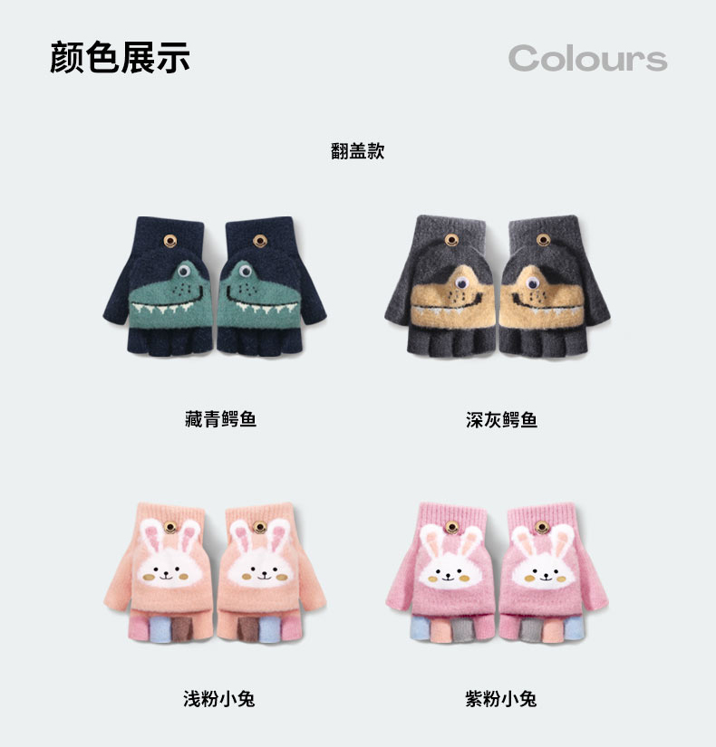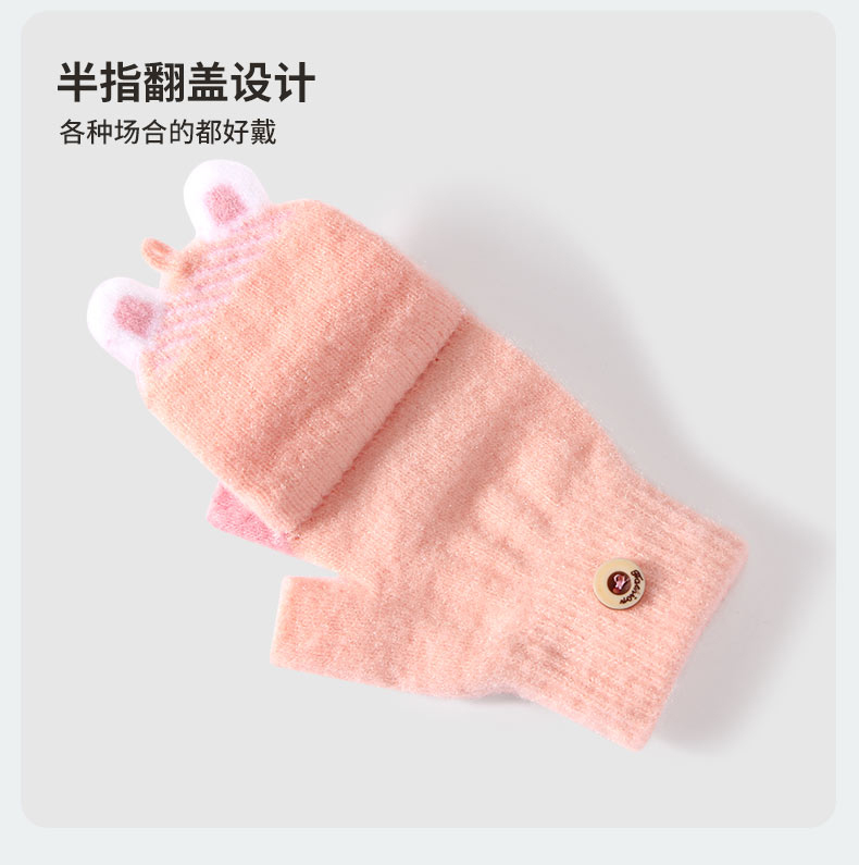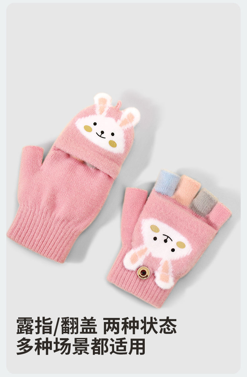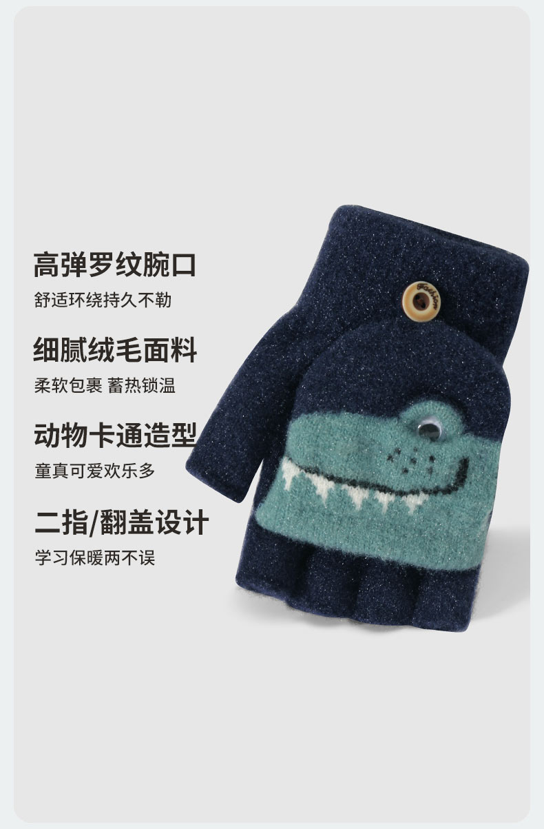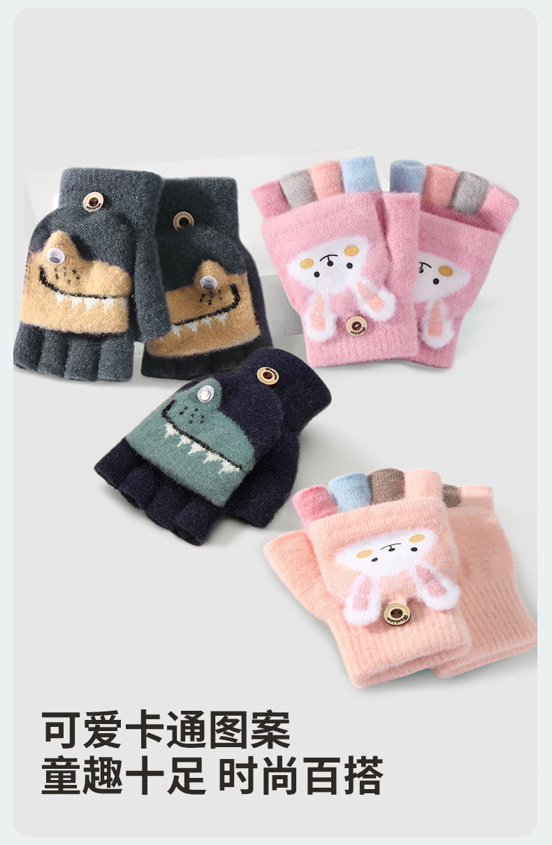 【朵熙儿】冬季儿童手套秋冬季保暖男童女童半指翻盖宝宝学生加绒手套