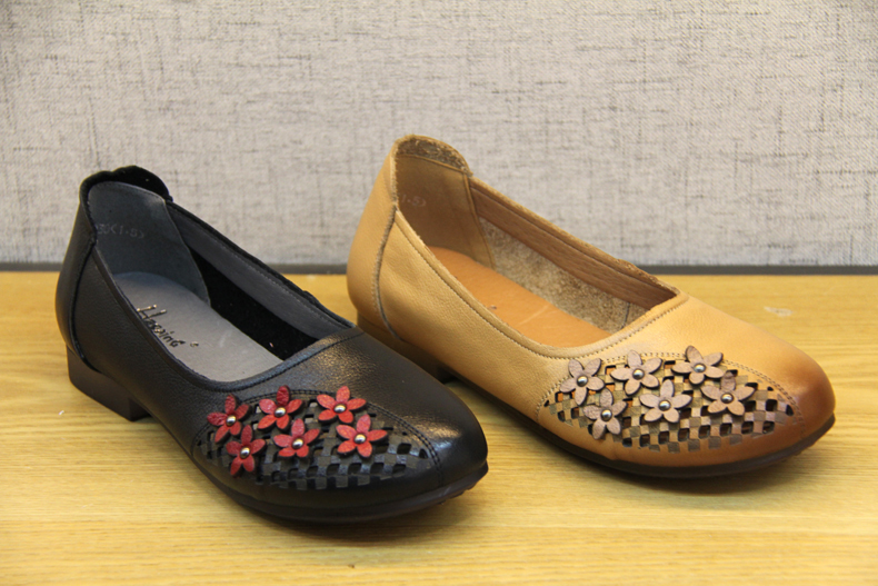 豪行女鞋夏款21292601一脚蹬真皮女鞋舒适透气冲孔软底复古镂空鞋 专柜正品