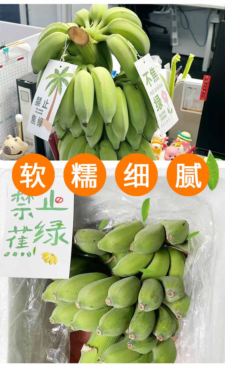 米蕉熟了,摸起来是软的,口感是软糯甜的。如果小米蕉没有软说明不够熟,口感也就没有那么甜。如何判断熟了?黄皮不是唯一标准,捏起来软了,就是熟了,这是时候的小米蕉皮薄肉甜。