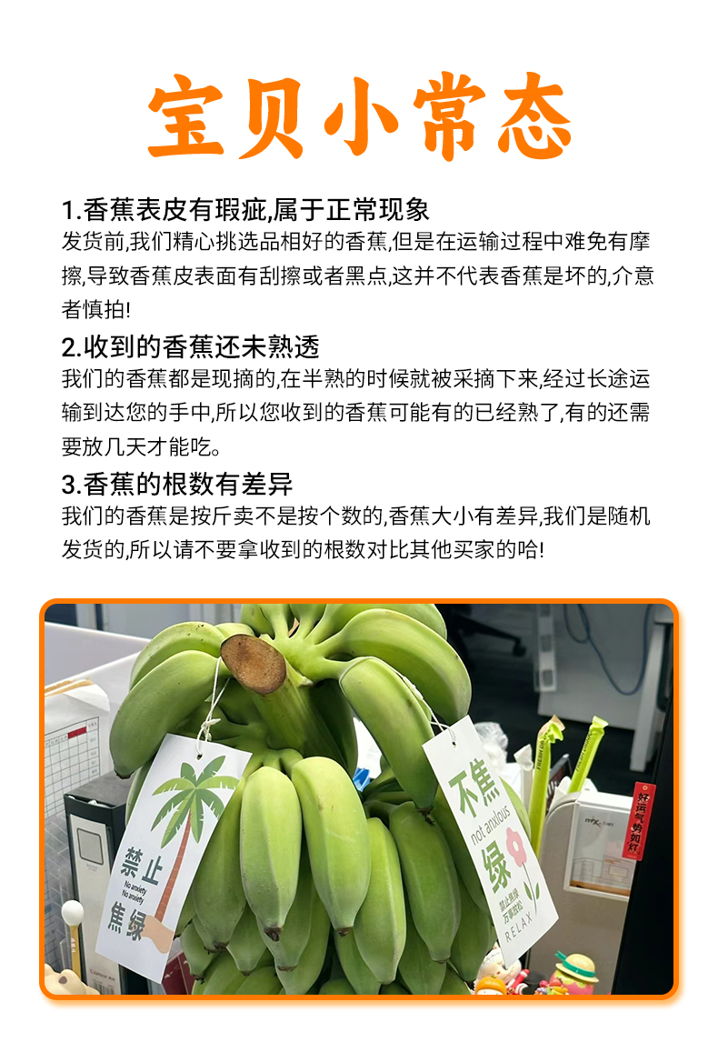 【催熟方法】收到后擦干香蕉表皮水份,再用报纸包好,放入泡沫箱密封,放置温度高的地方,表皮微软即可食用!