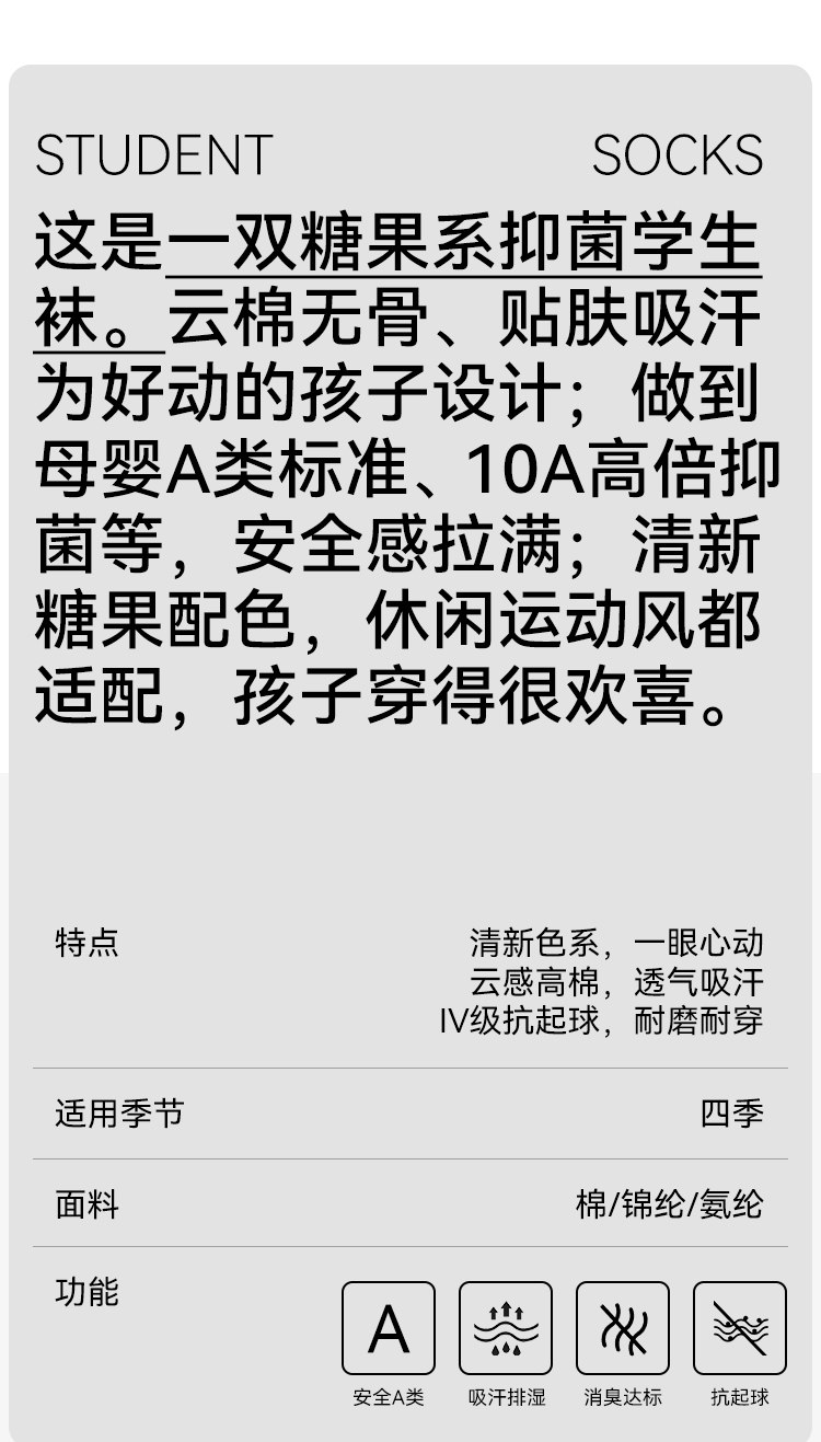 *MILOFISH米乐鱼.儿童7A抑菌撞色活力袜 高弹不勒脚-买5双+再送一双同款,共6双