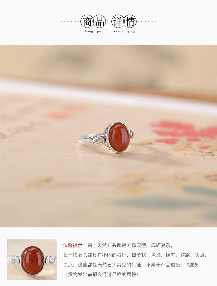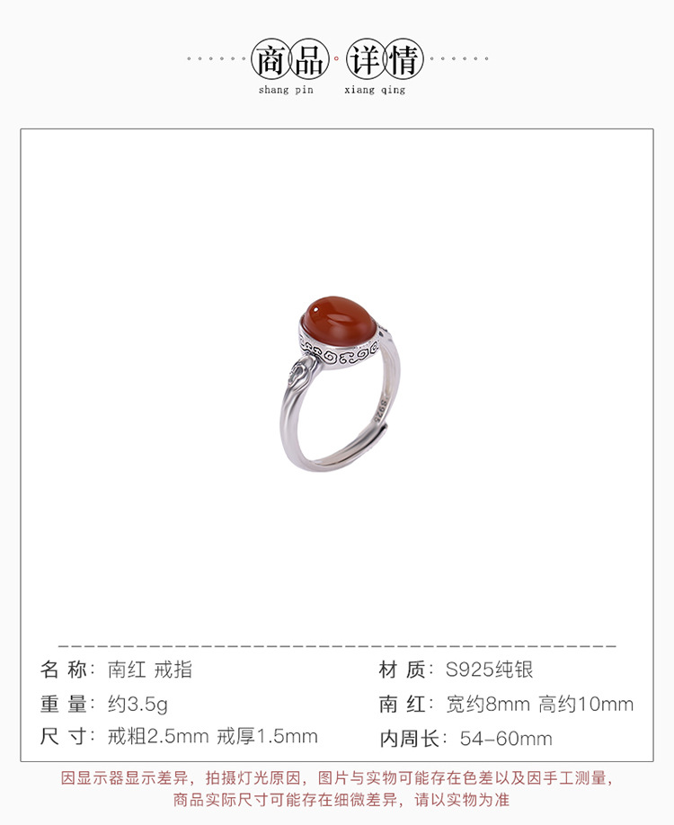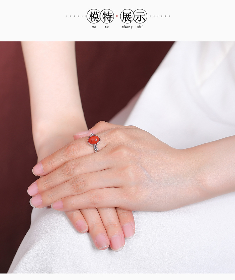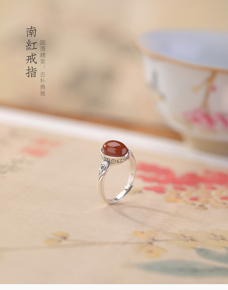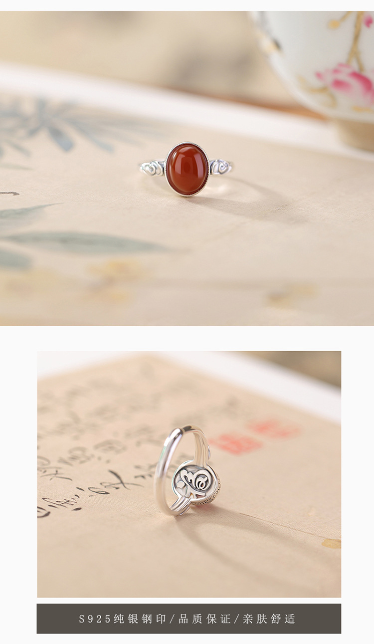 【祥云晚霞】S925纯银南红玛瑙复古蛋面祥云女士开口戒指【CW-JZ07026】