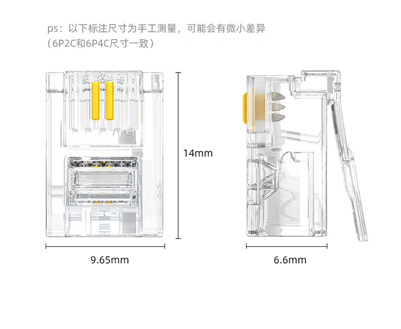 商品名称:6P2C电话水晶头 2芯工程级镀金语音电话线接头 RJ11电话语音水晶头