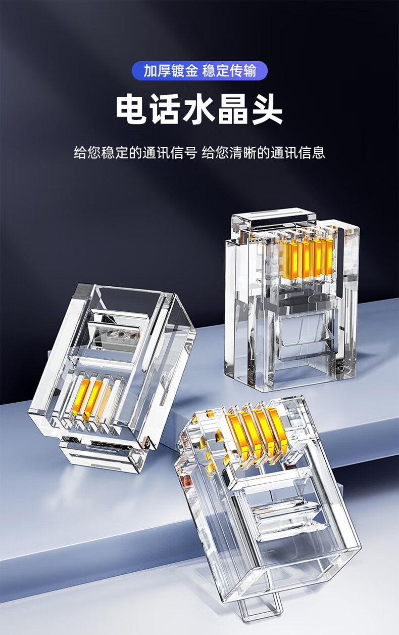 | 4芯电话水晶头【6P4C镀金款】100个/袋 | JHR-RJ11 |