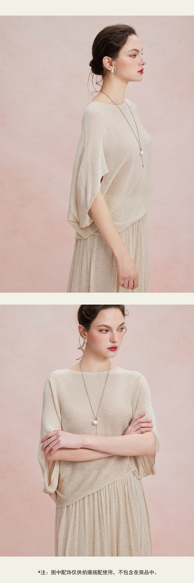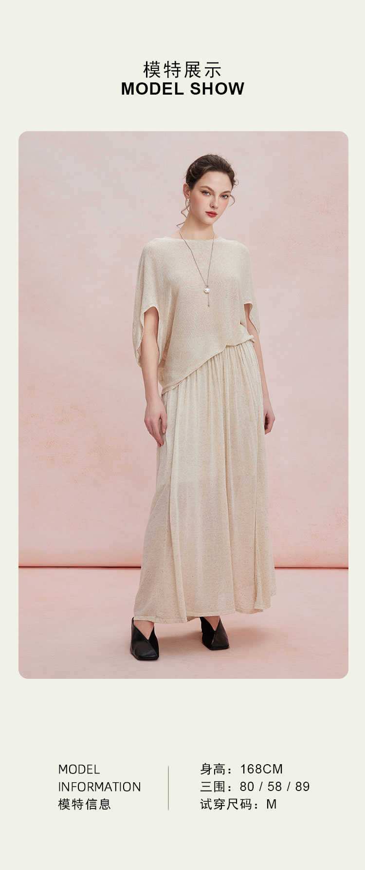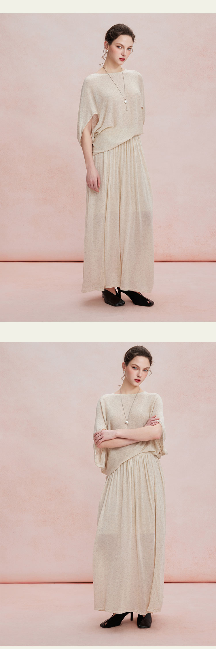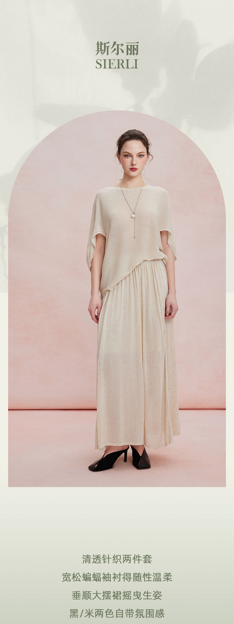 RF602斯尔丽26新款轻薄亚麻质感显瘦廓形上衣+松紧半裙休闲
