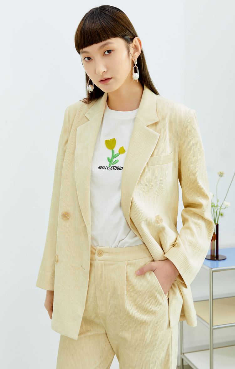 NEELLY纳俪商场同款西装外套女高级设计感2022春夏新款百搭上衣N22023C02004