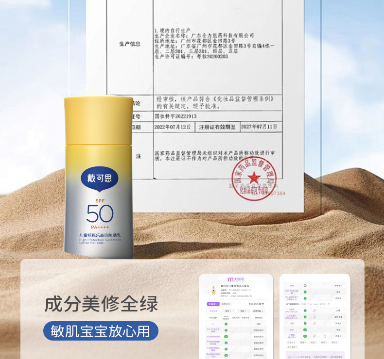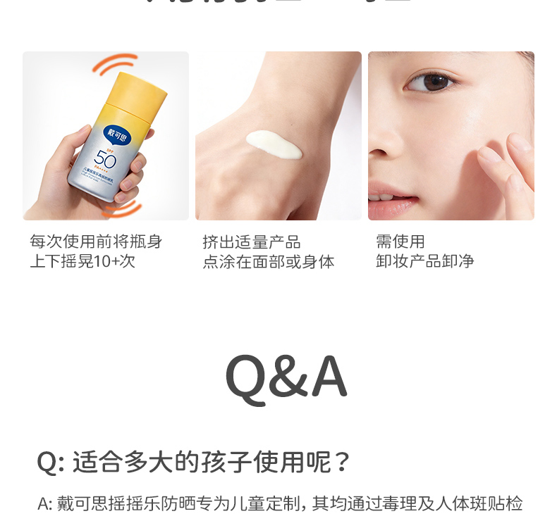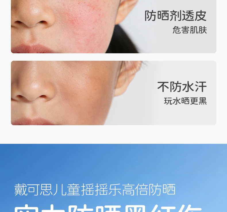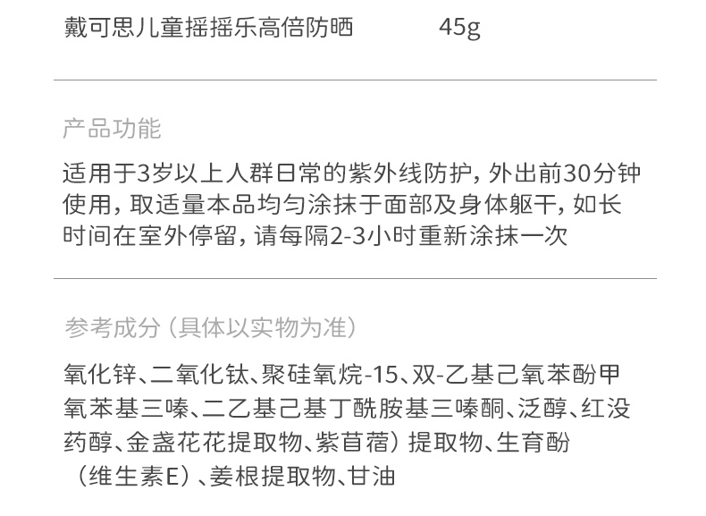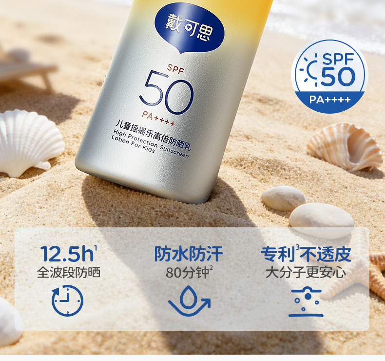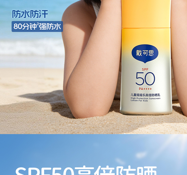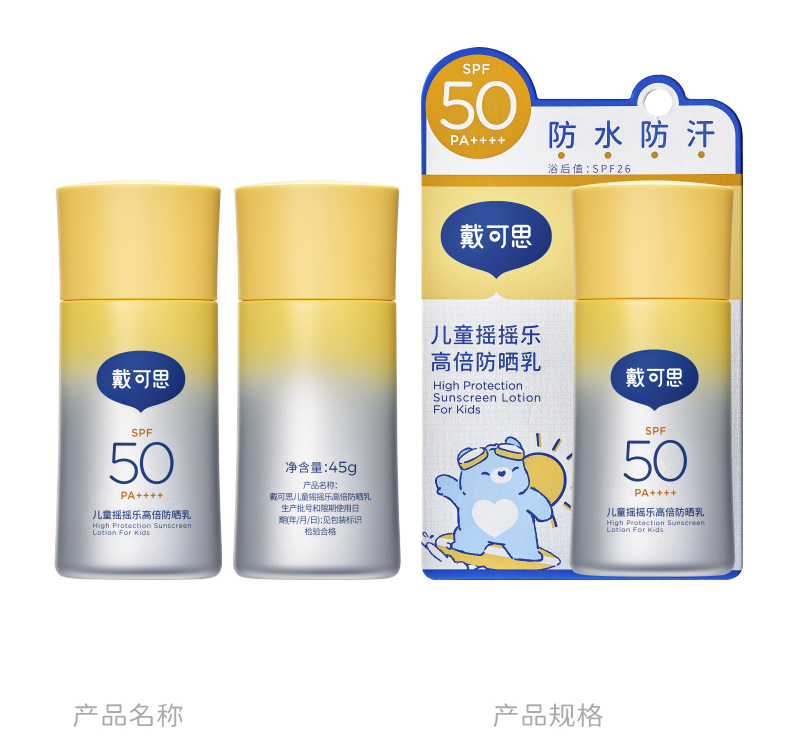 戴可思儿童摇摇乐高倍防晒乳45g高倍防晒强防水汗大分子防晒霜3岁+温和防晒乳♥