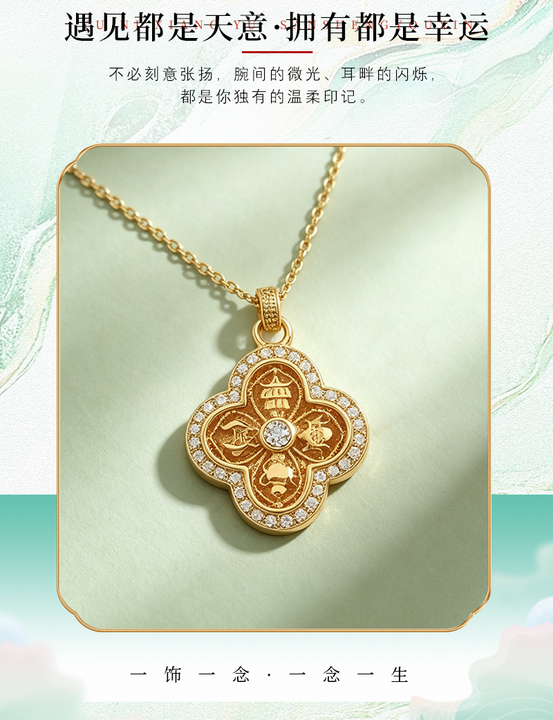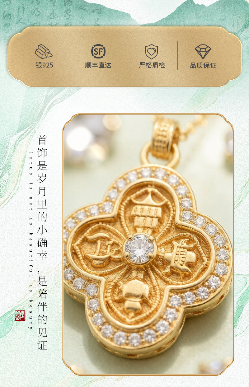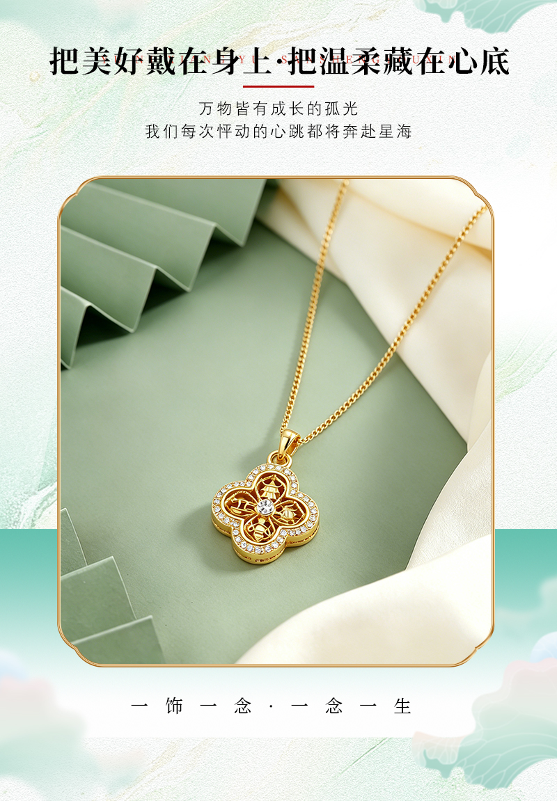 【宏艺珠宝】银钻玉荚・四季雅链坠·银s925项链