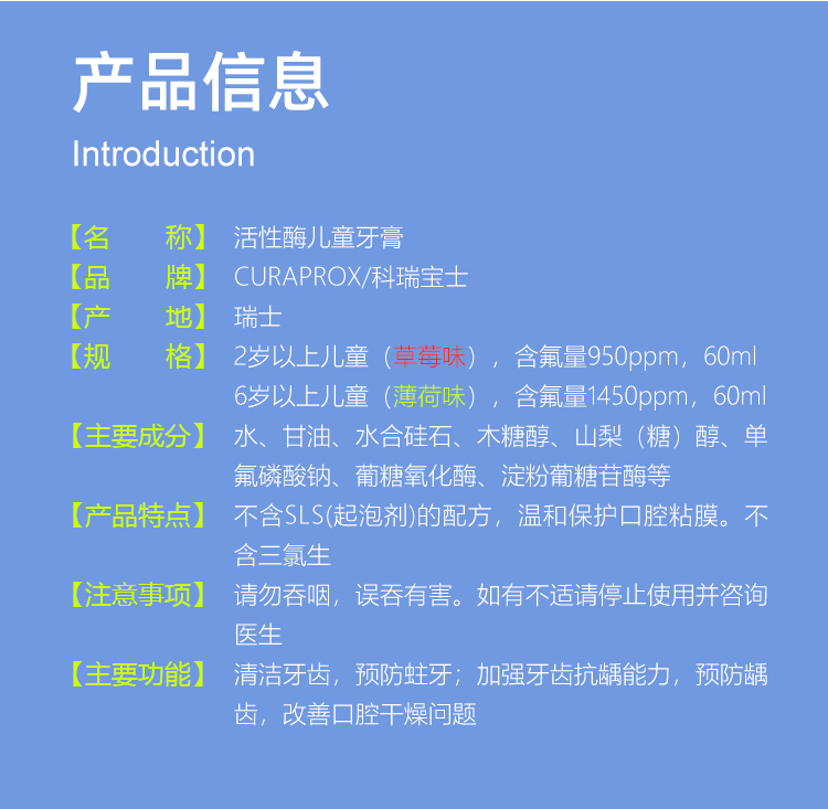 瑞士科瑞宝士CURAPROX活性酶儿童牙膏