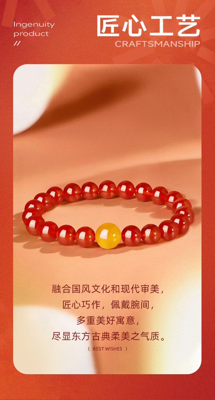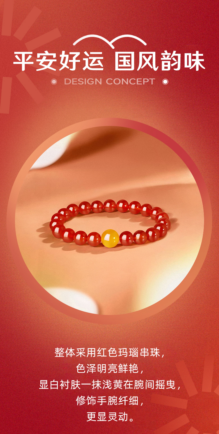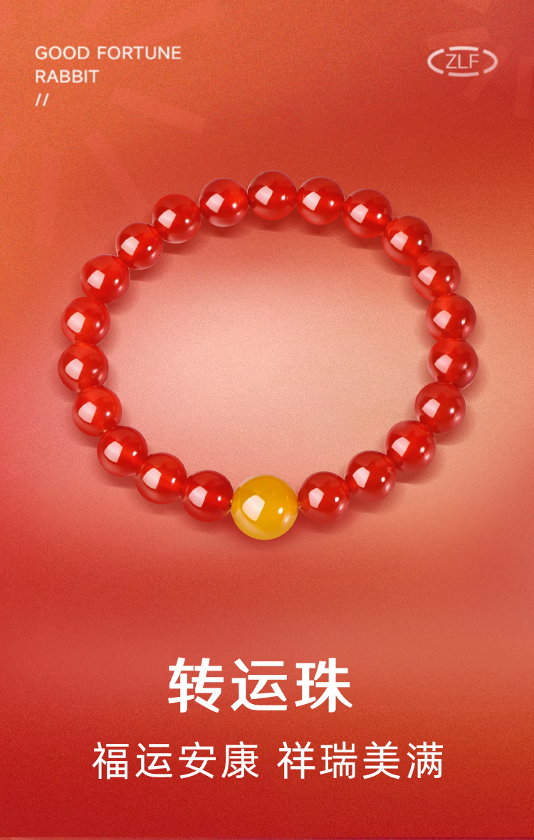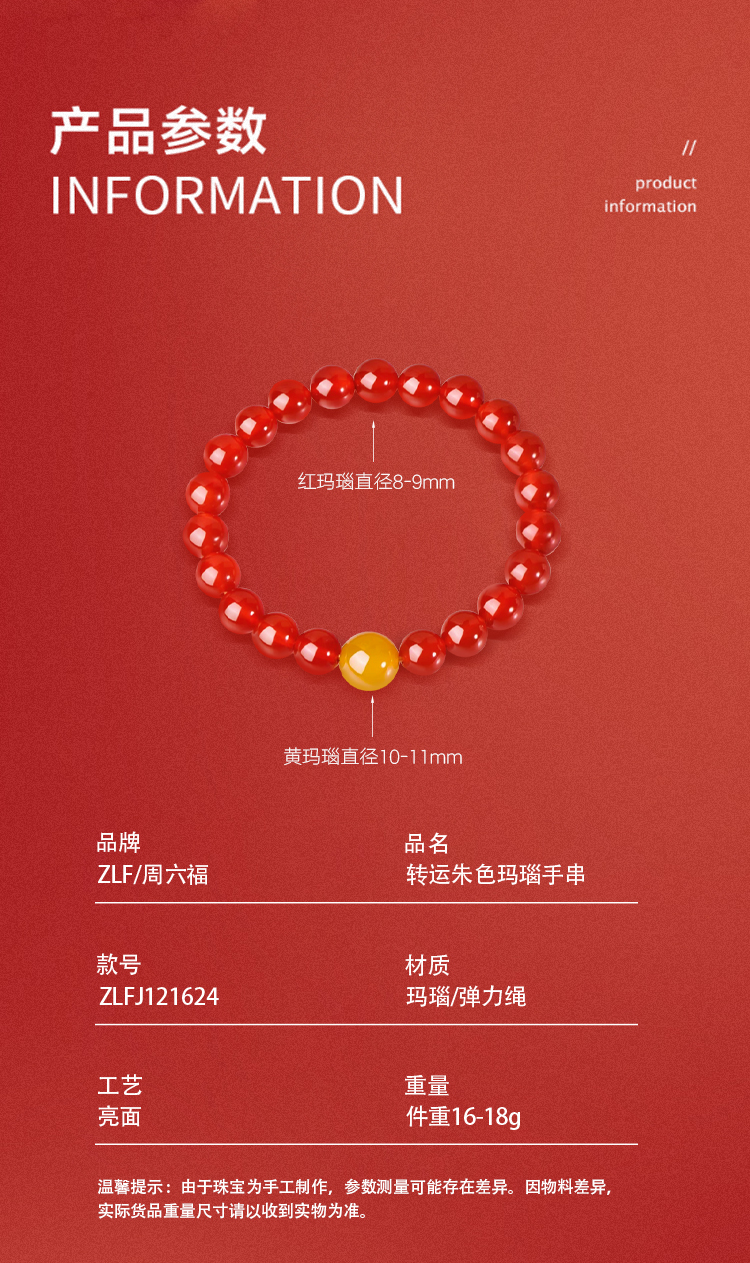 周六福转运朱色玛瑙手串ZLFJ121624(福利款绒布袋包装无证书)★