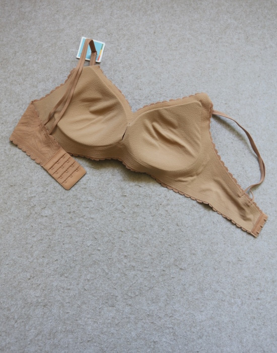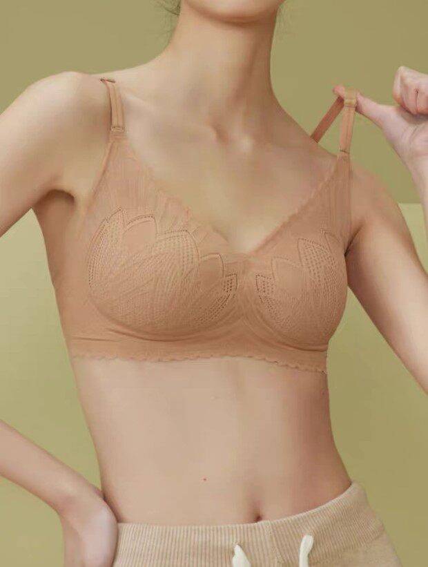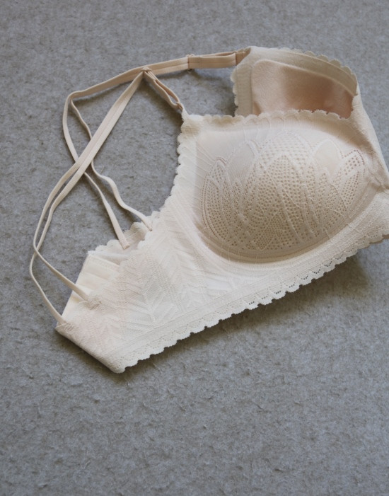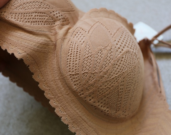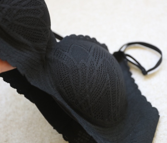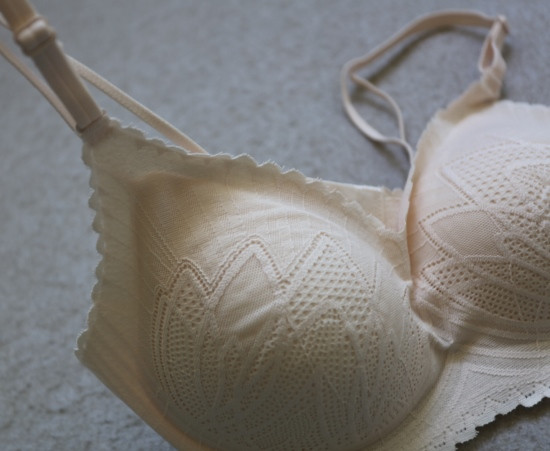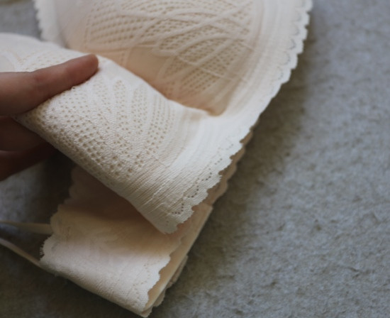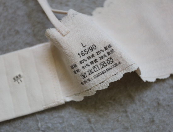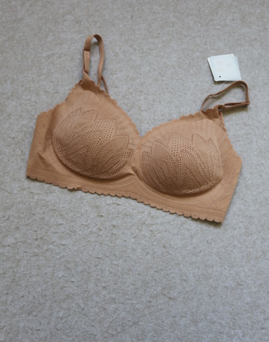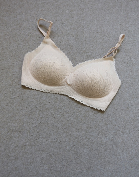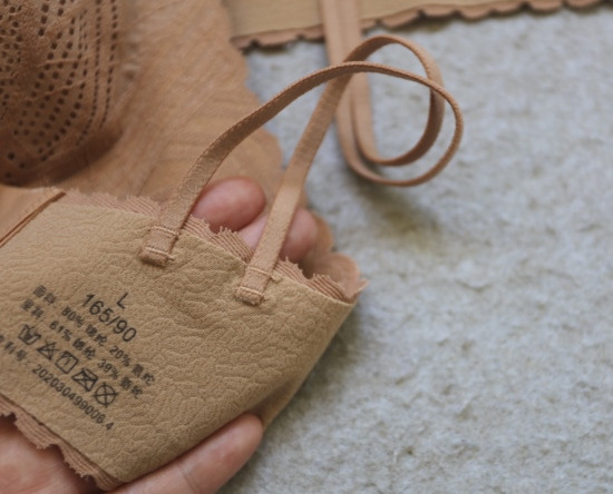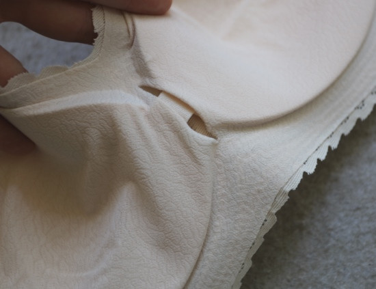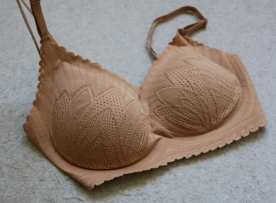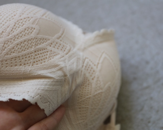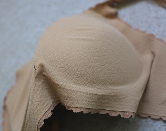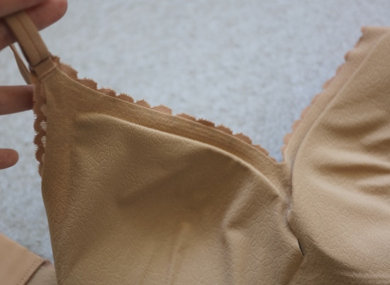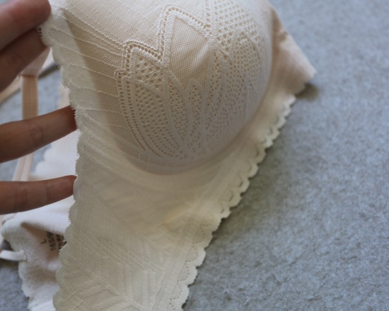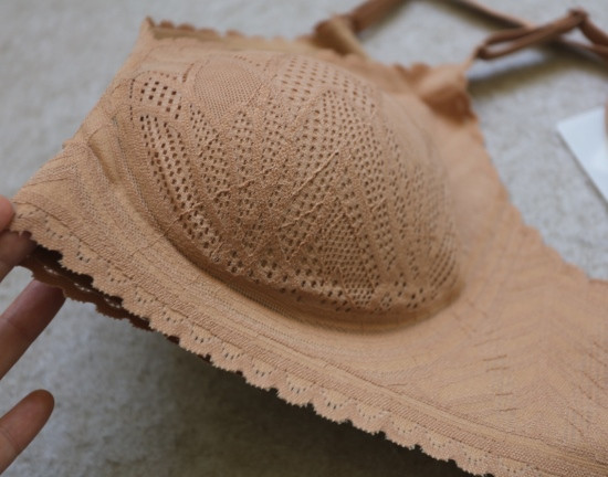 罩杯内里 也是软软糯糯的 有非常细的花纹 周圈点胶 无缝线