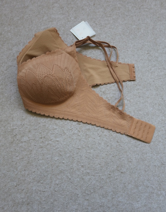 而且 这层软糯的花纹布料 一直延伸到后背扣 体感更好 里外都很周全 哈~