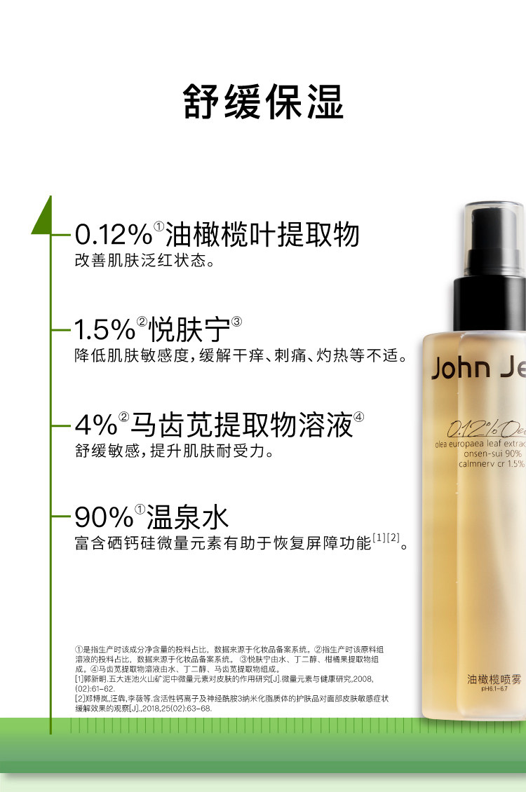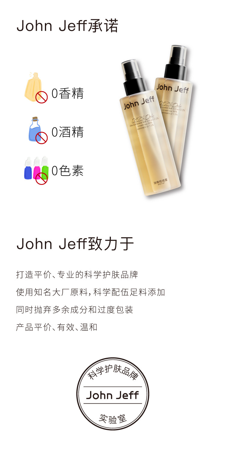 John Jeff油橄榄喷雾200ML 缓解红热干痒改善褪红舒缓爽肤水化妆水姐夫
