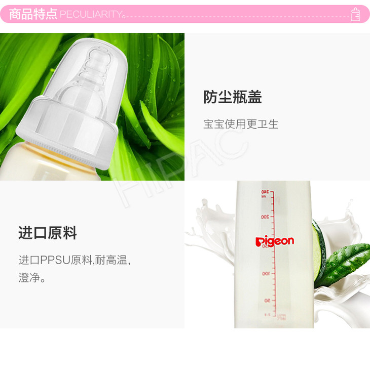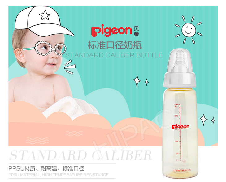 【一般贸易】Pigeon贝亲标准口径PPSU塑料奶瓶(240ml)AA124