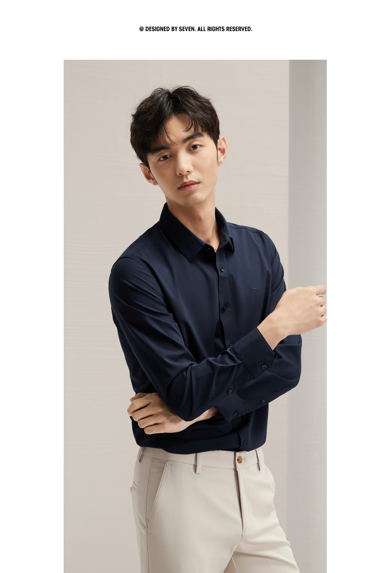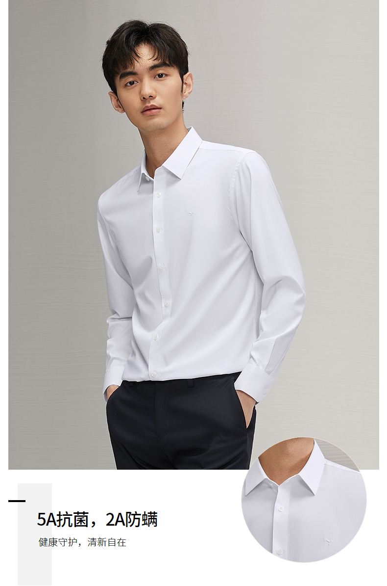 【5A抗菌2A防螨】柒牌长袖衬衫男士春秋新款商务正装上班百搭衬衣 127A70750