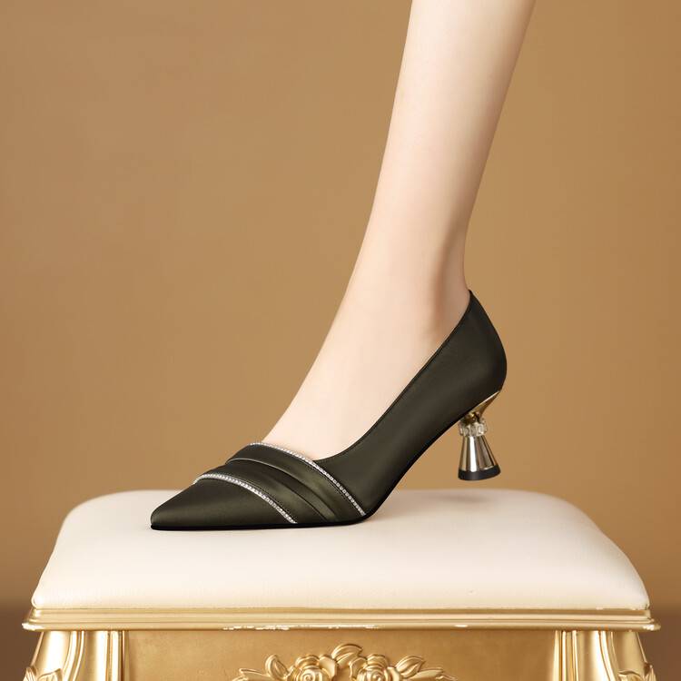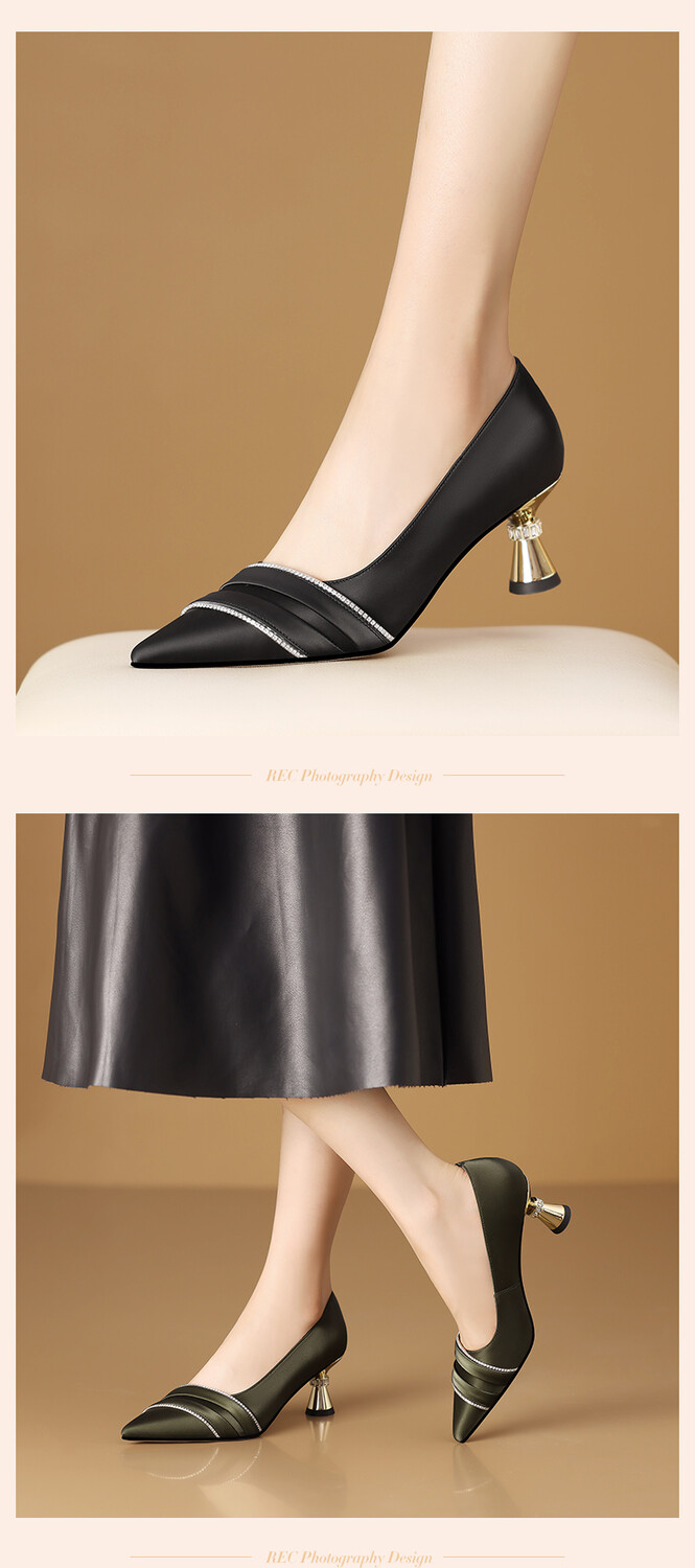 【预售5天】尖头单鞋女细跟2024春夏季新款时装鞋真皮黑色气质显瘦高跟工作鞋HY&H3466