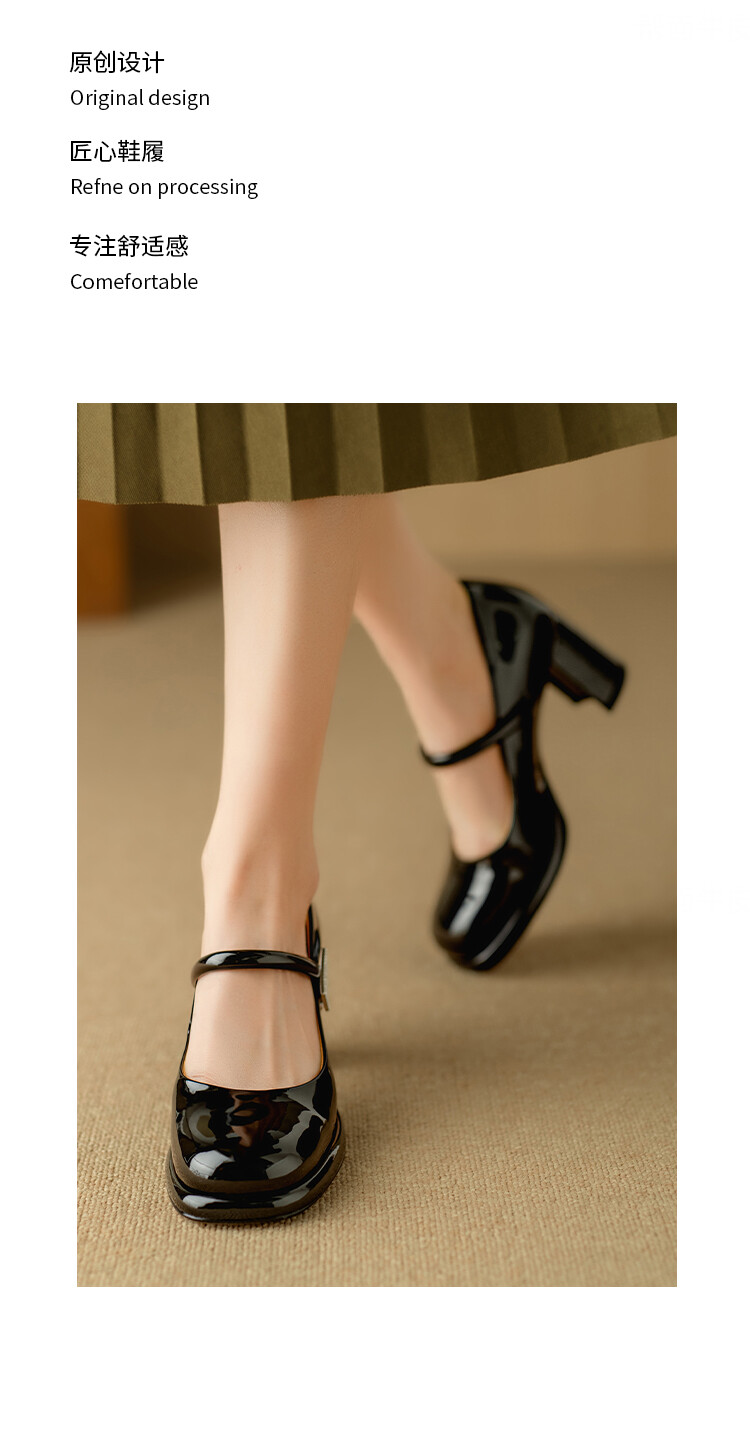 【预售5天】法式小香风玛丽珍鞋,复古方头粗跟一字带单鞋NJMK&K892