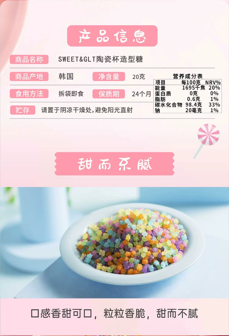 韩国高丽堂陶瓷杯糖15g/063609 迷你马克杯小糖果粒粒香脆