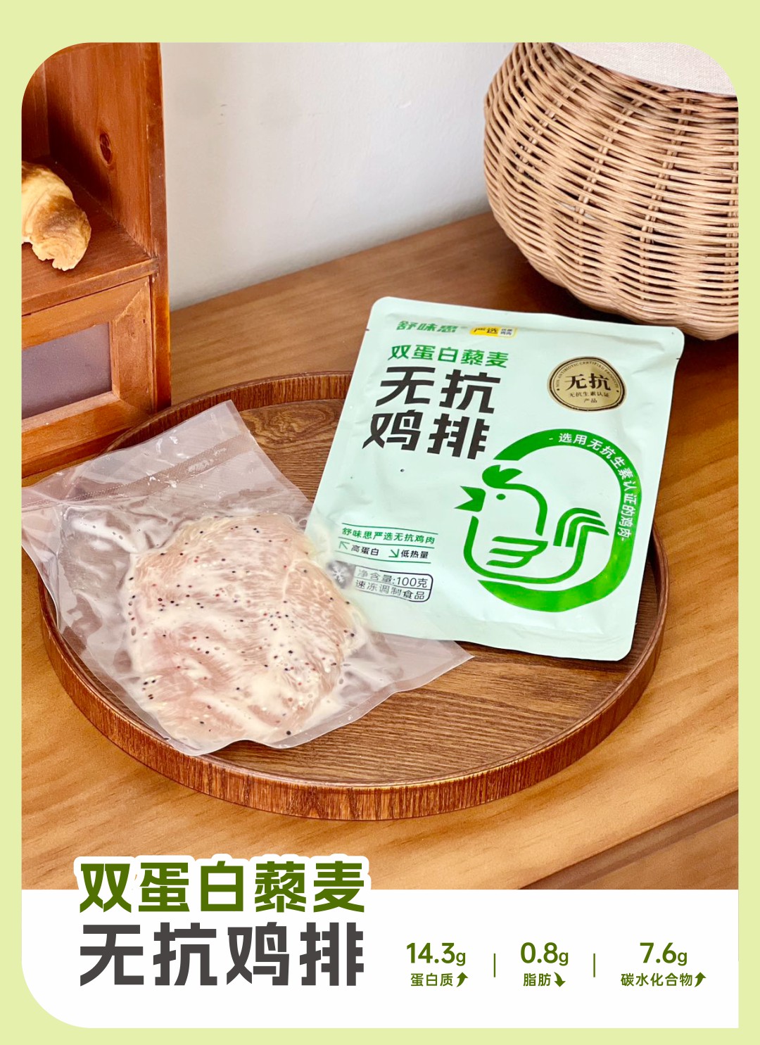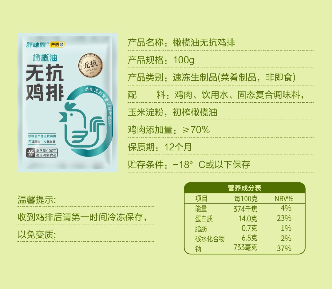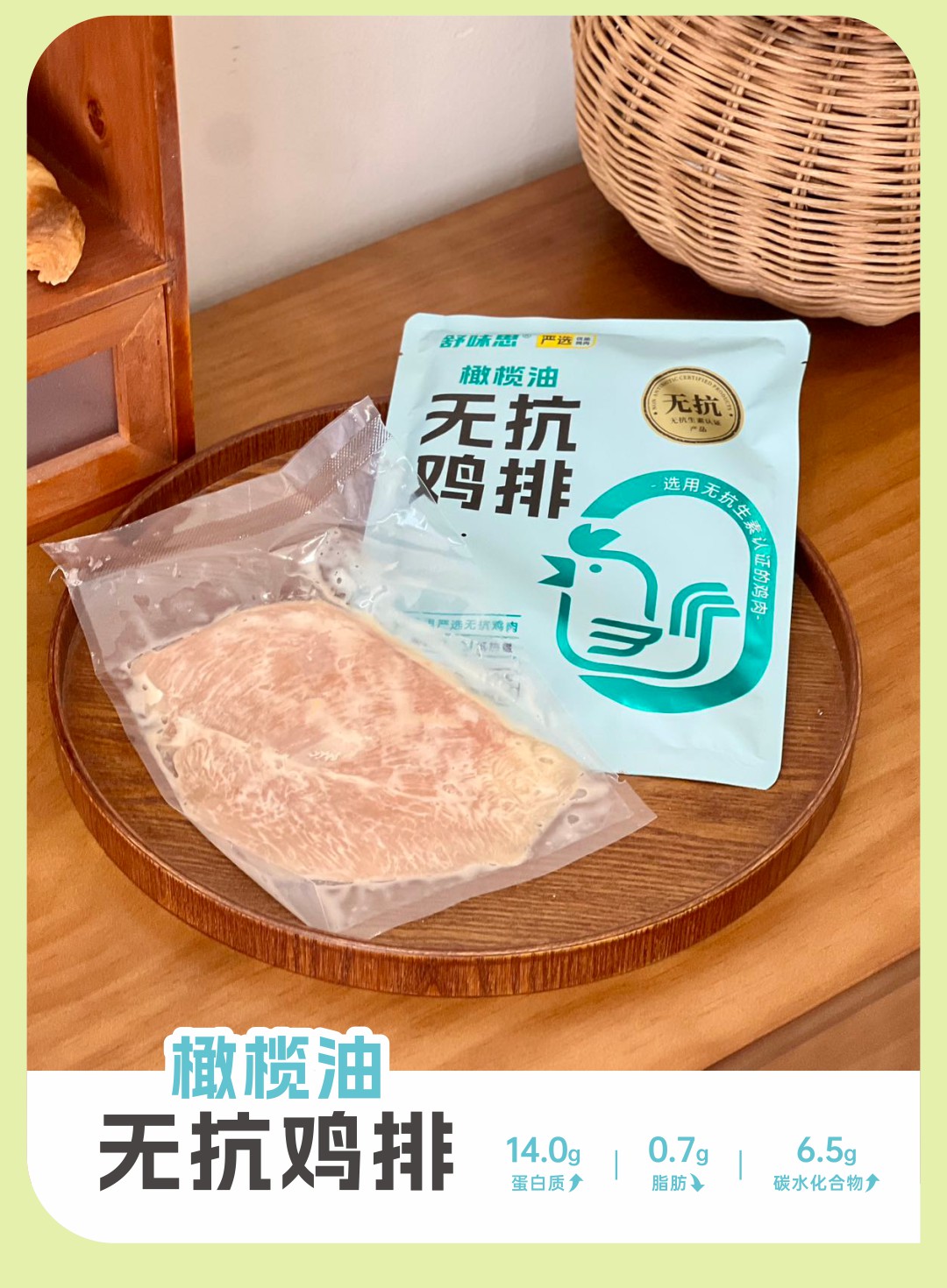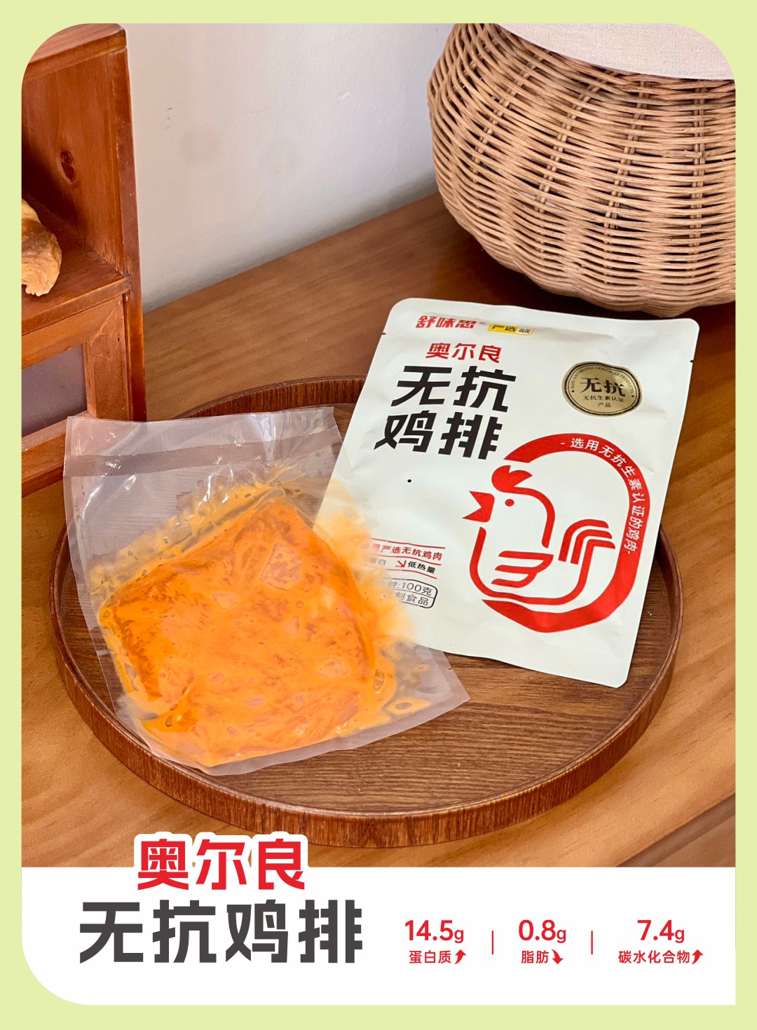 【品名/规格】舒味思无抗鸡排(奥尔良无抗鸡排、橄榄油无抗鸡排、双蛋白藜麦无抗鸡排)