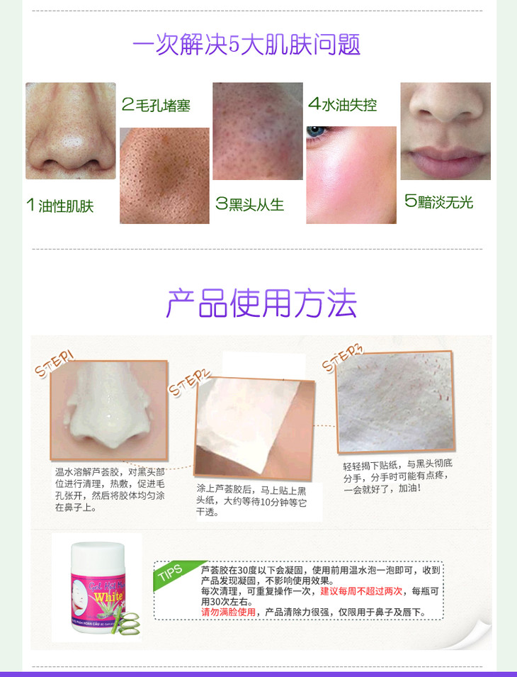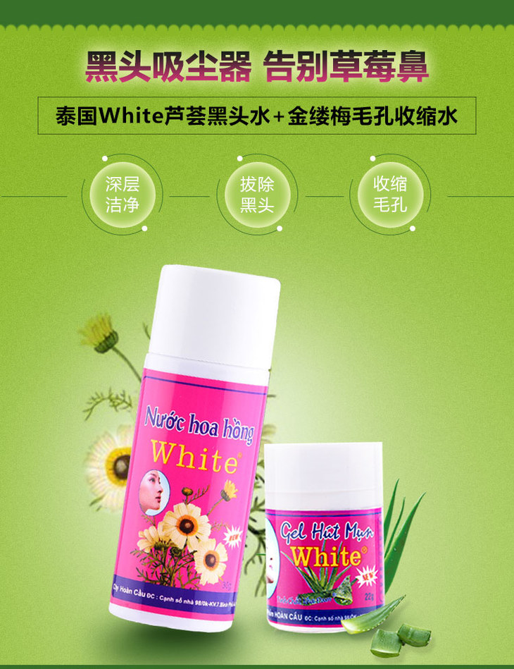 【现货】泰国White芦荟胶黑头水+收缩毛孔精华液组合套装撕拉式鼻贴【凝固状态下请放在热水杯1分钟】