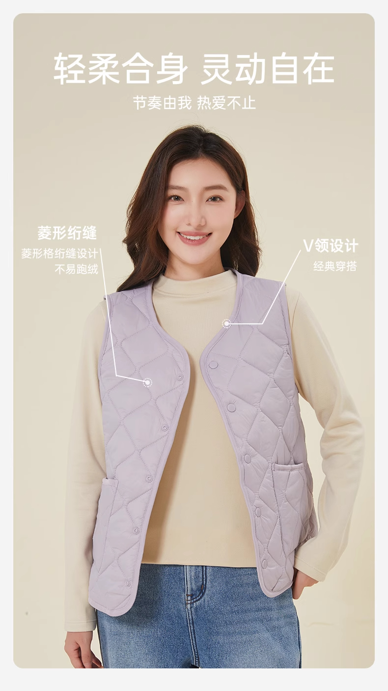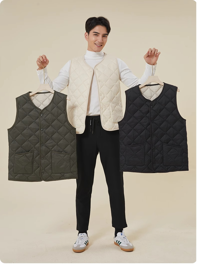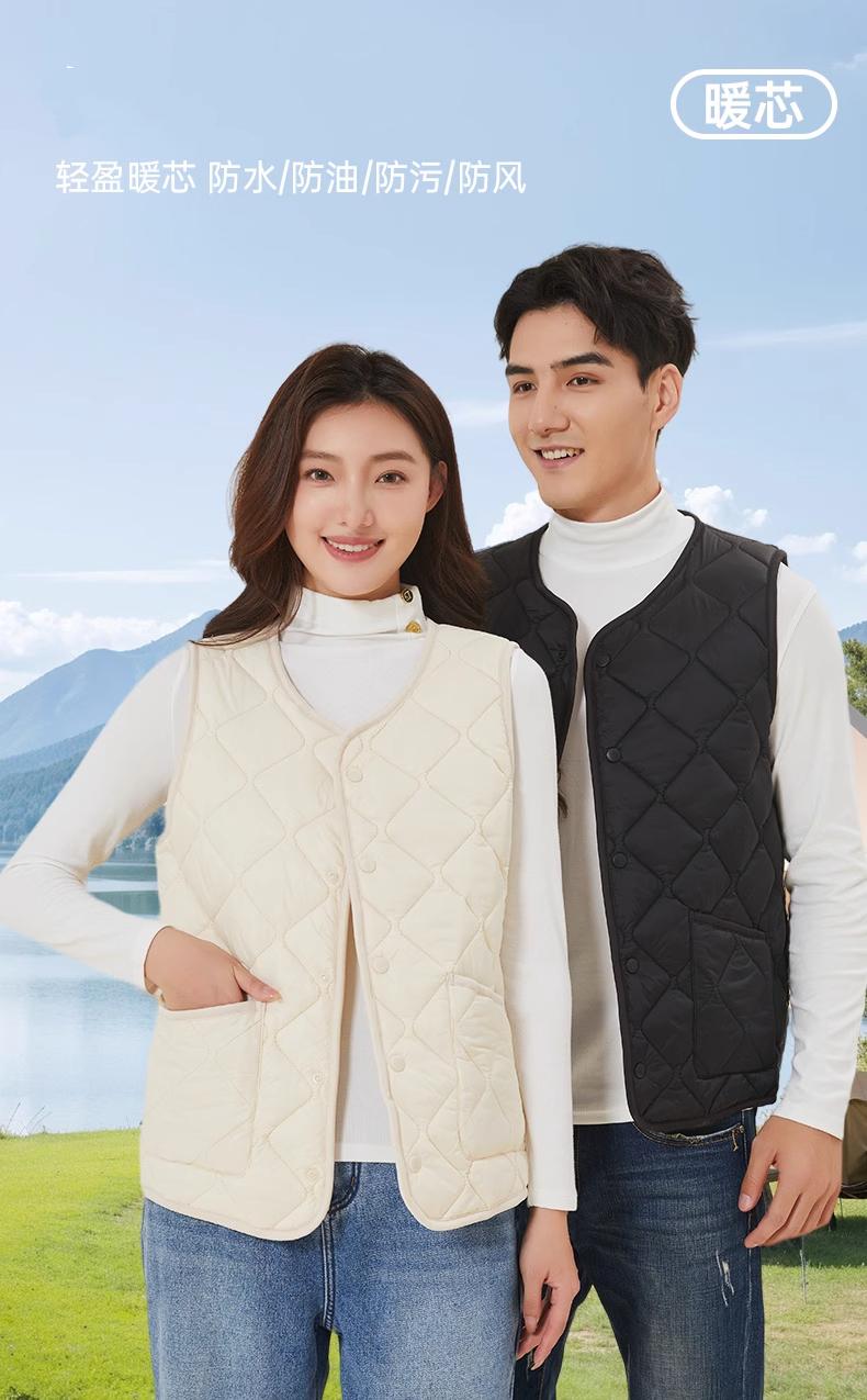 “保暖利器”男女款菱格马甲外套 | 三重保暖层 一穿即暖 轻薄显瘦 V领短款马甲外套