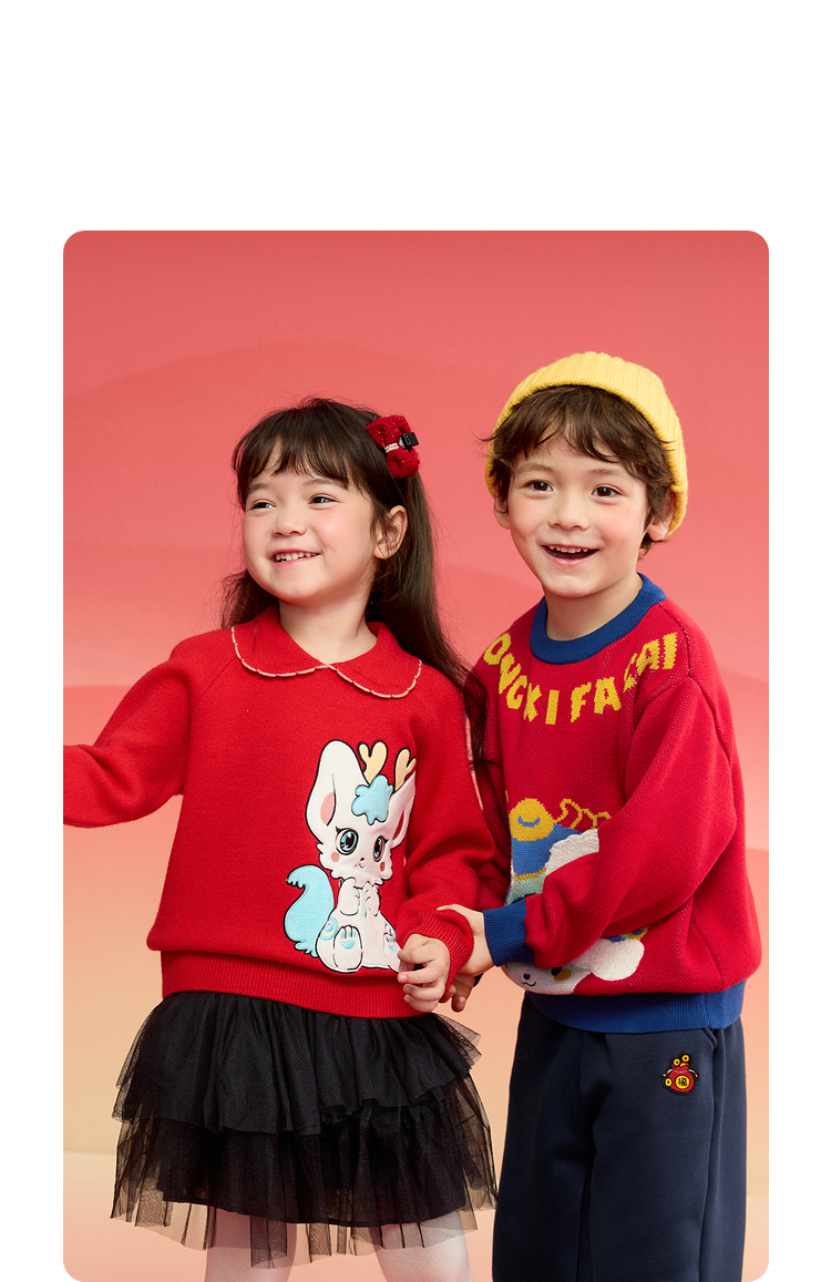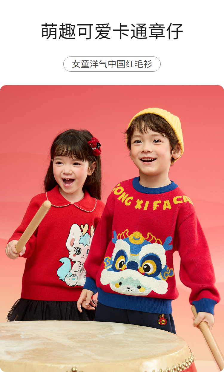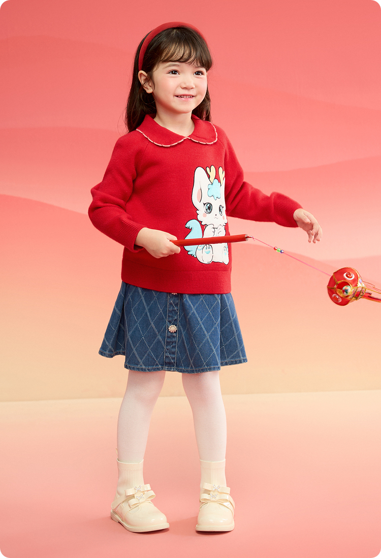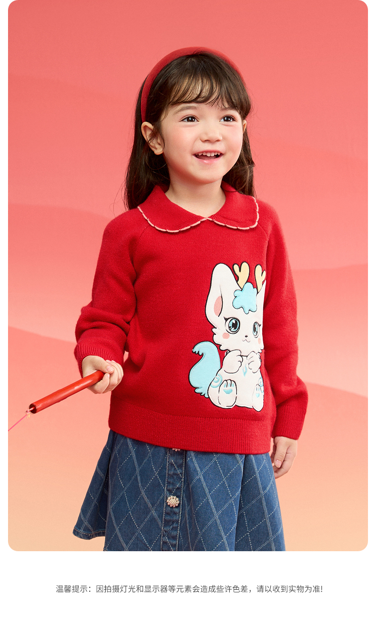 巴拉巴拉童装女童毛衣2025新款春装儿童针织衫新年红色洋气精致潮