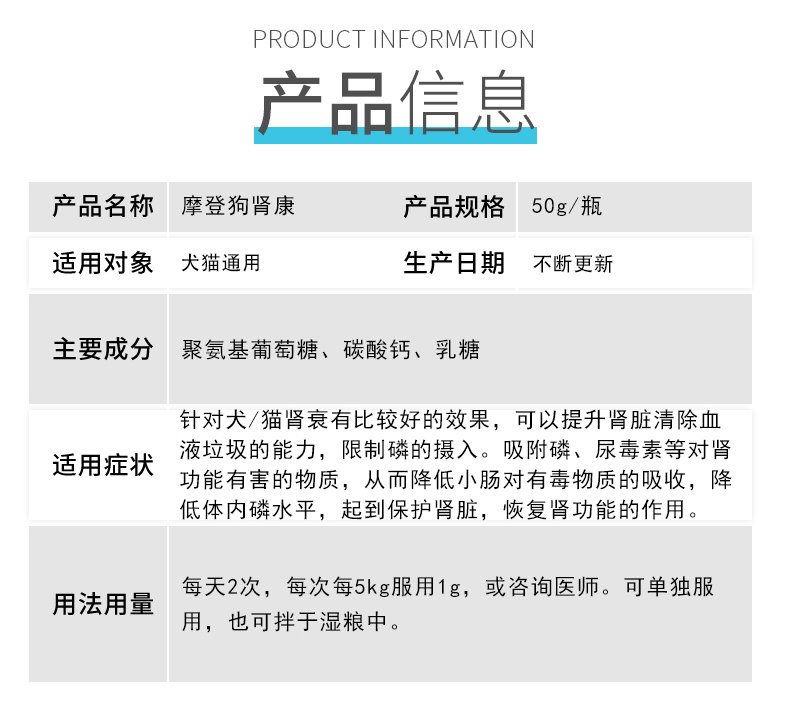 摩登狗肾康粉/肾透犬猫尿素氨升高/肾衰停/狗狗慢性肾衰竭宠物降磷
