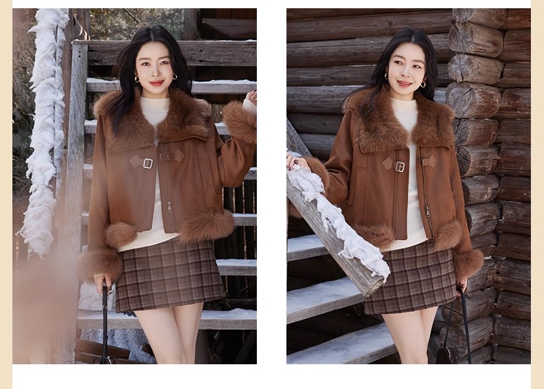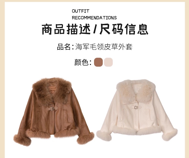 【门店同款】ENJOY冬季“游牧漫寻”海军毛领皮草外套 168443121