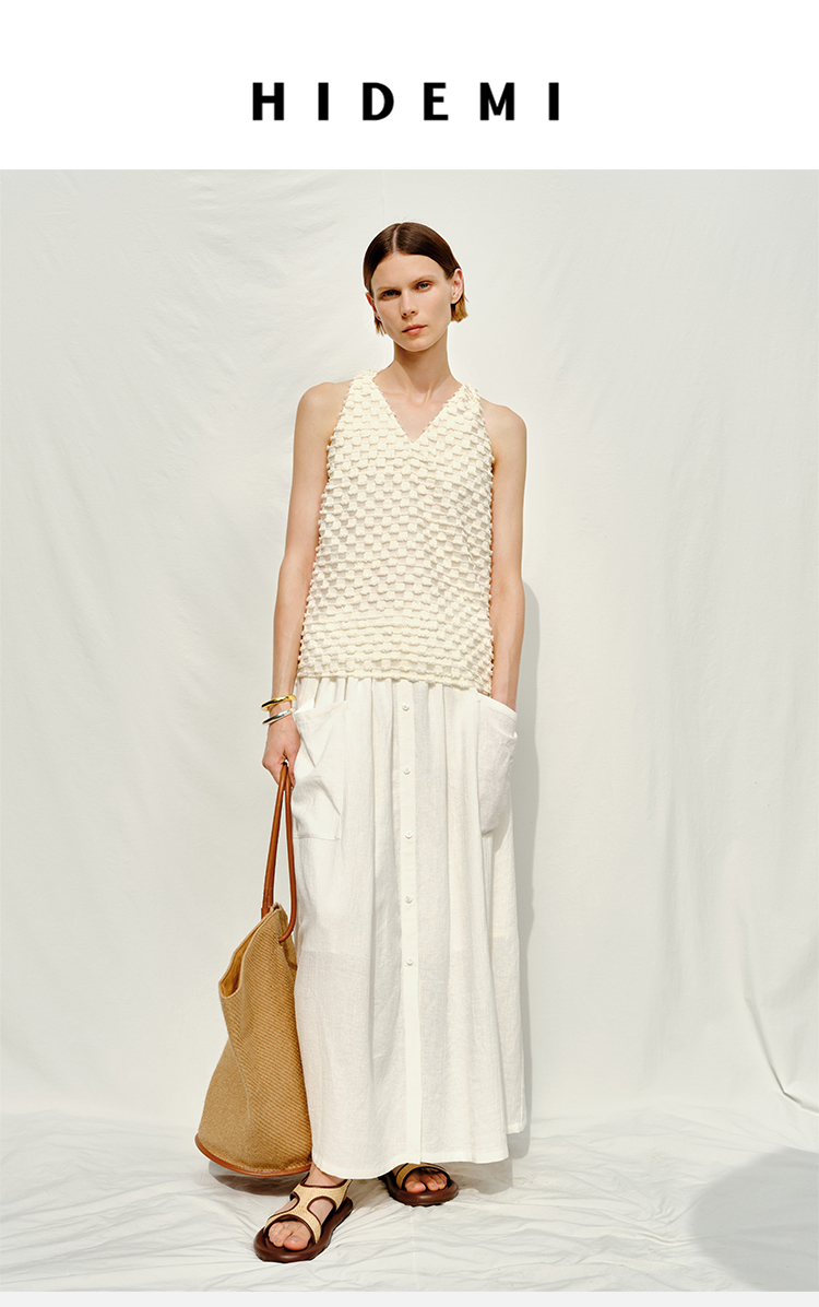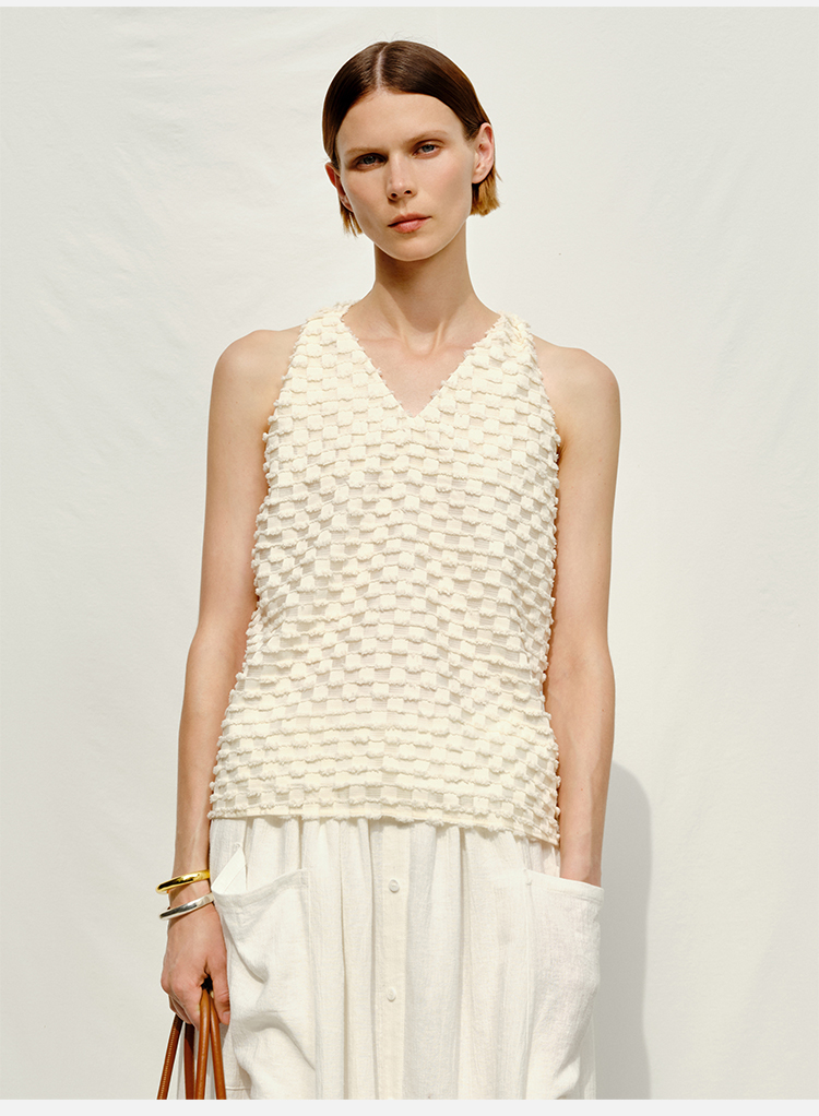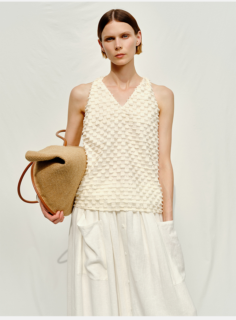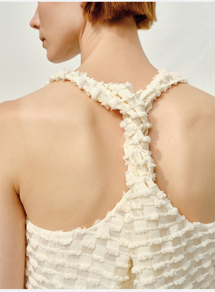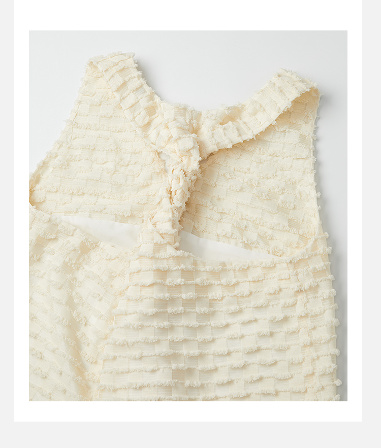 HIDEMI度假系列短流苏立体艺术感提花纽结设计感背心