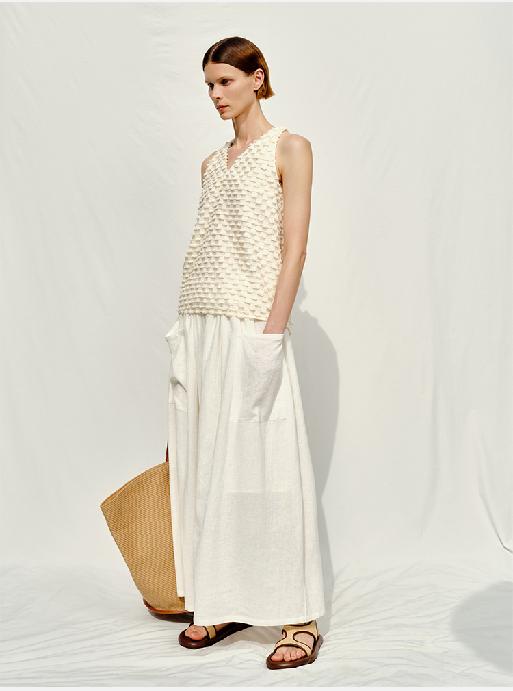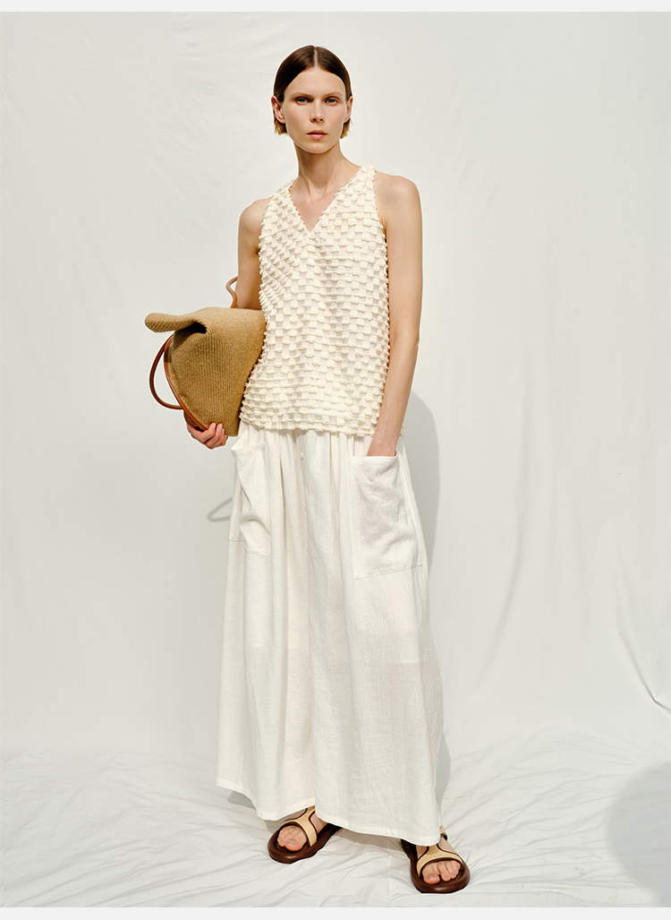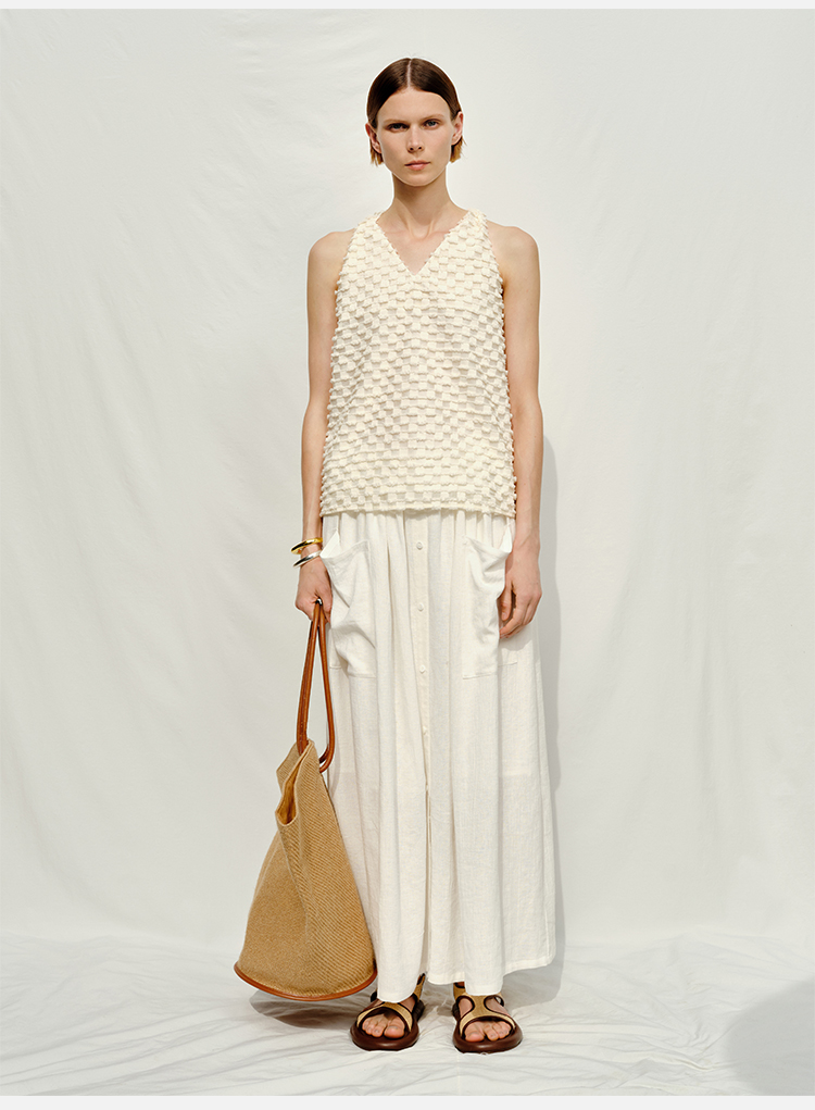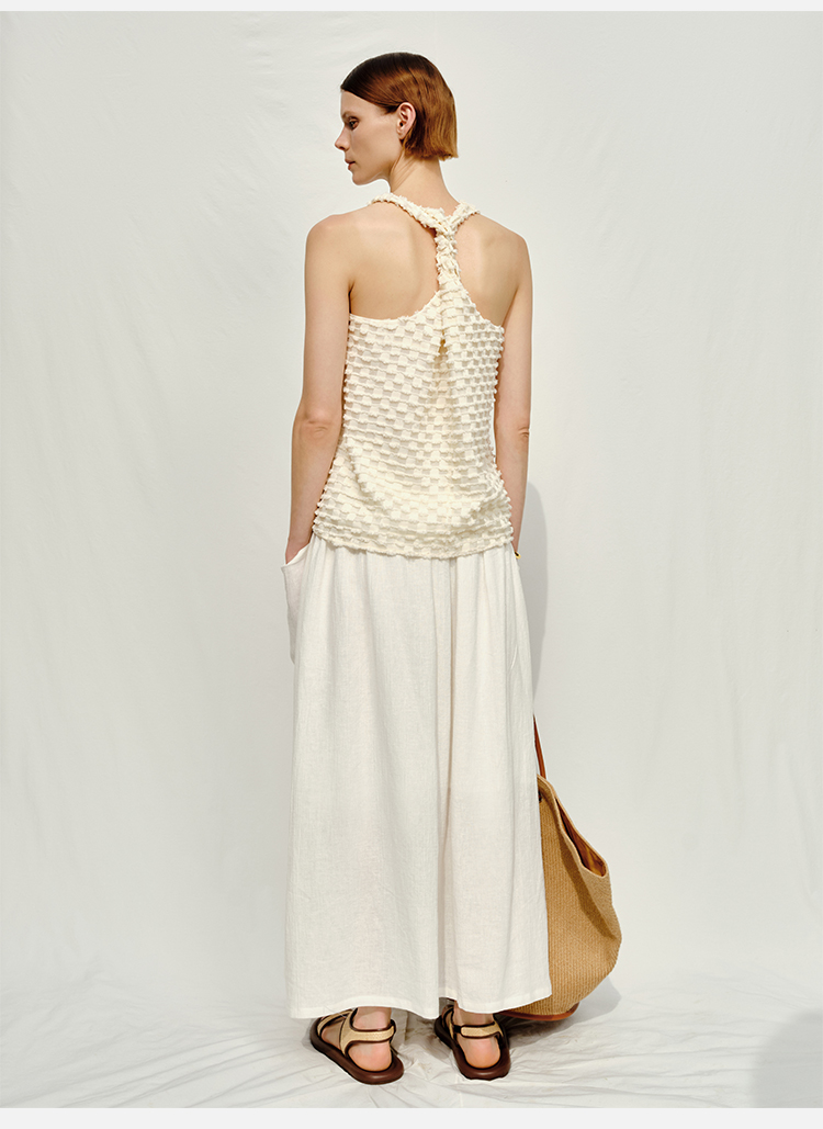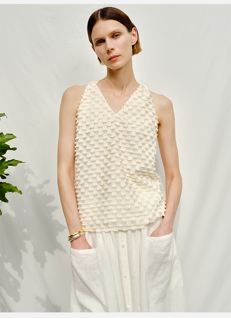 HIDEMI度假系列短流苏立体艺术感提花纽结设计感背心