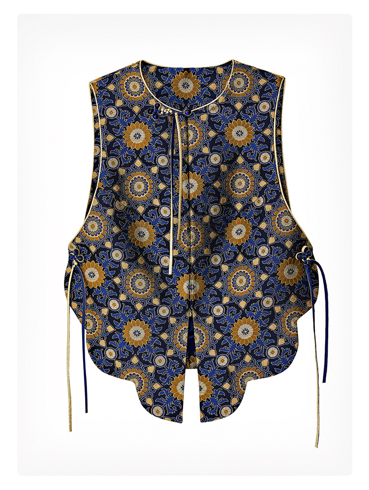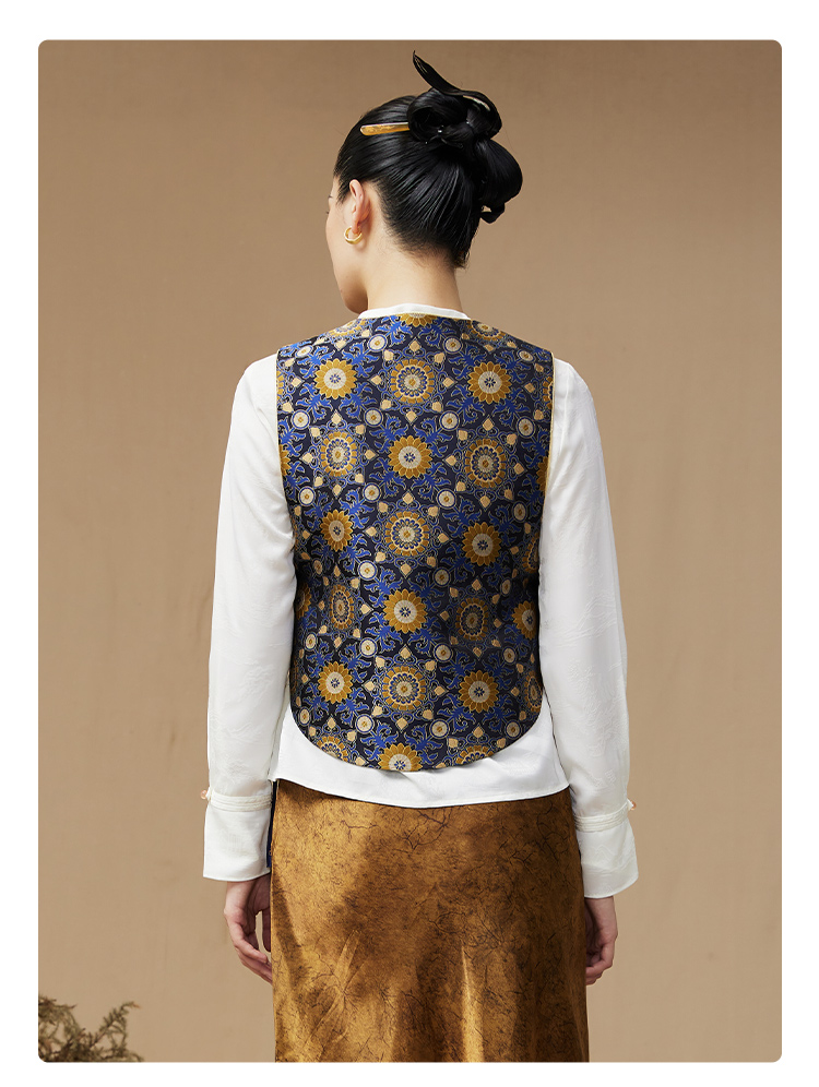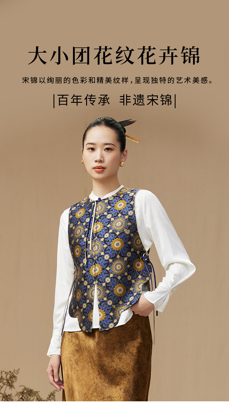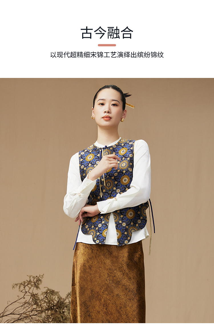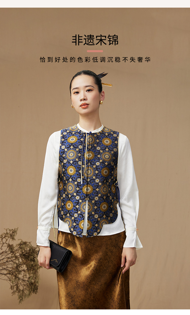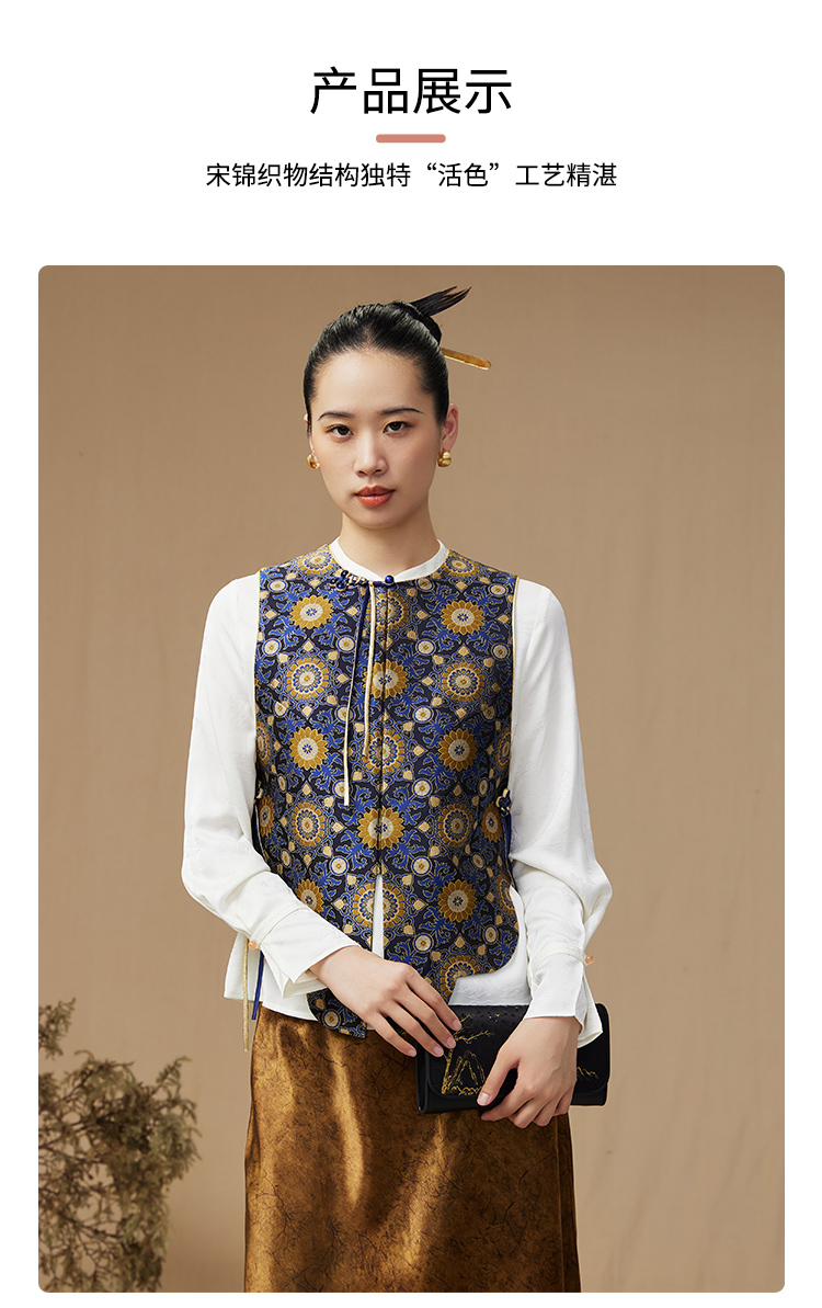 SAINTJOY/上久楷 女式宋锦马甲 中式上衣 中国风 复古 大小团花纹花卉锦 CY1044207009