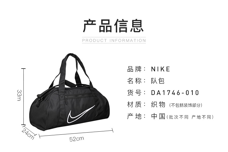 NIKE足球运动训练大容量单肩包装备手提包DA1746010
