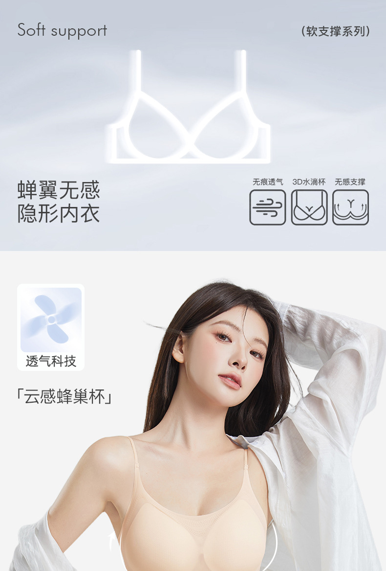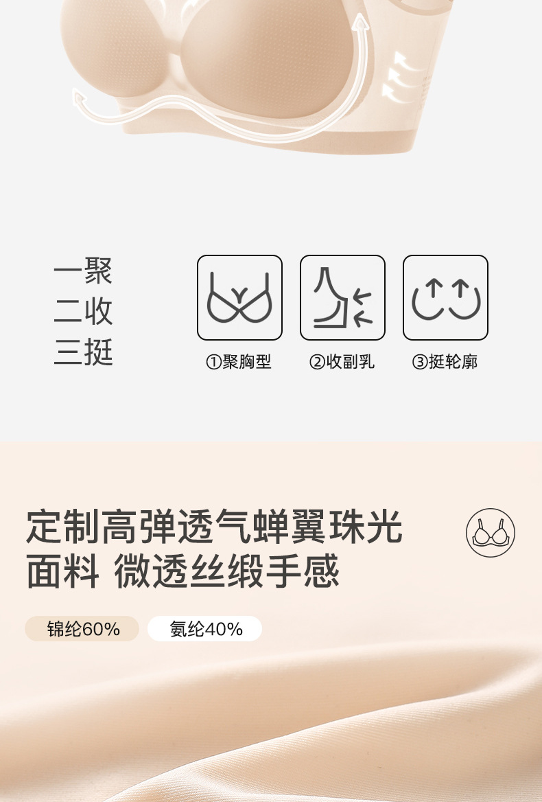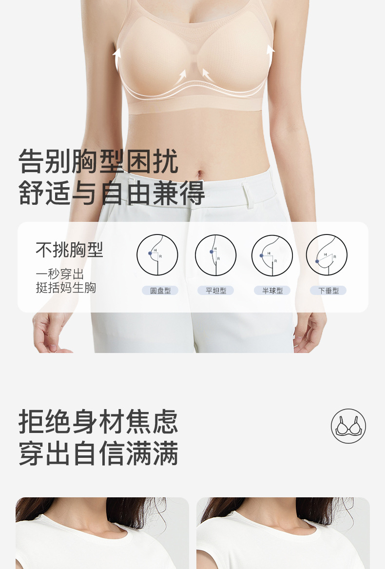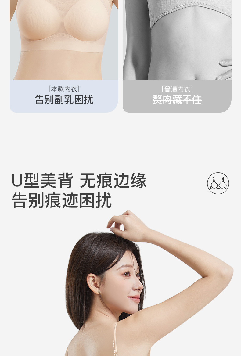 U型美背【无痕边缘!告别痕迹困扰】无痕超薄款内衣女夏季冰丝大胸显小胸透气聚拢美背运动女士文胸罩。ry
