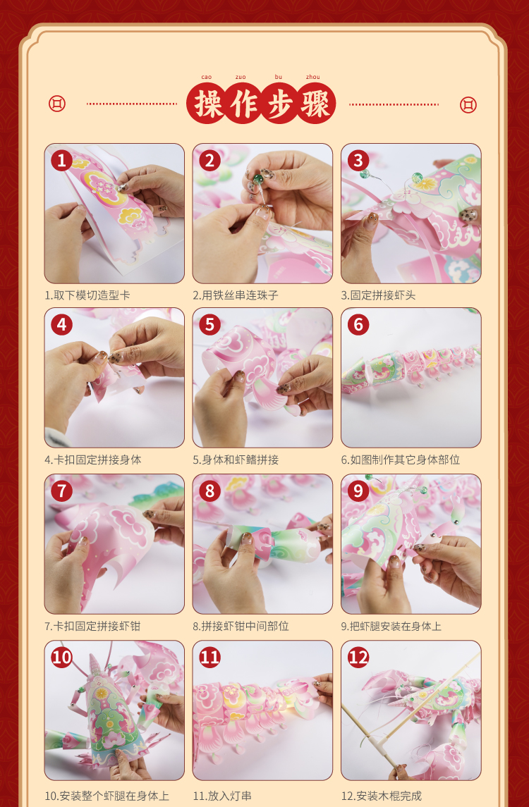 新年春节元旦蛇年国潮虾灯礼盒手工diy儿童制作材料包幼儿园灯笼