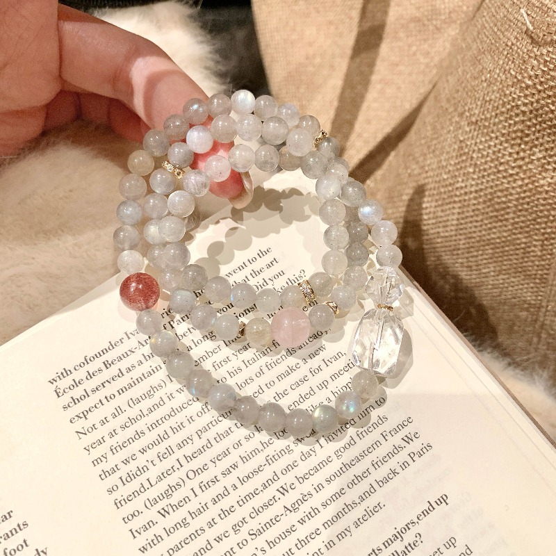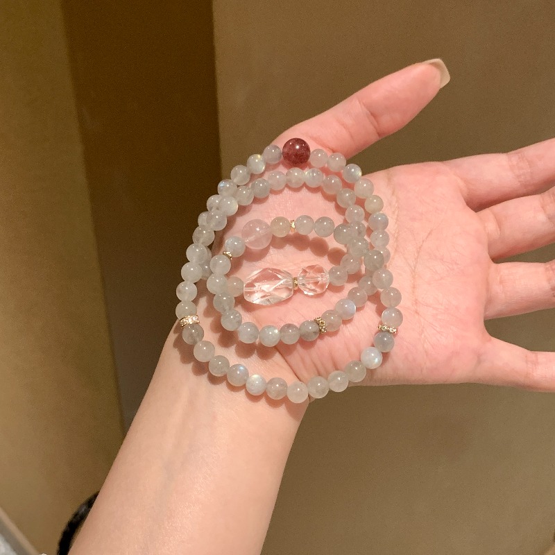 ARSIS|晶石系列 月光桃夭·灰月光三圈串珠手链