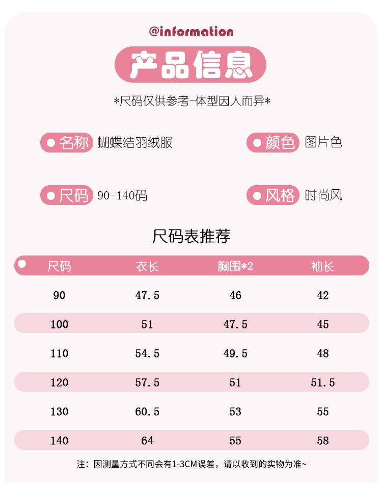 韩国儿童装女童冬装后背大蝴蝶结羽绒服不透风外套洋气童装潮