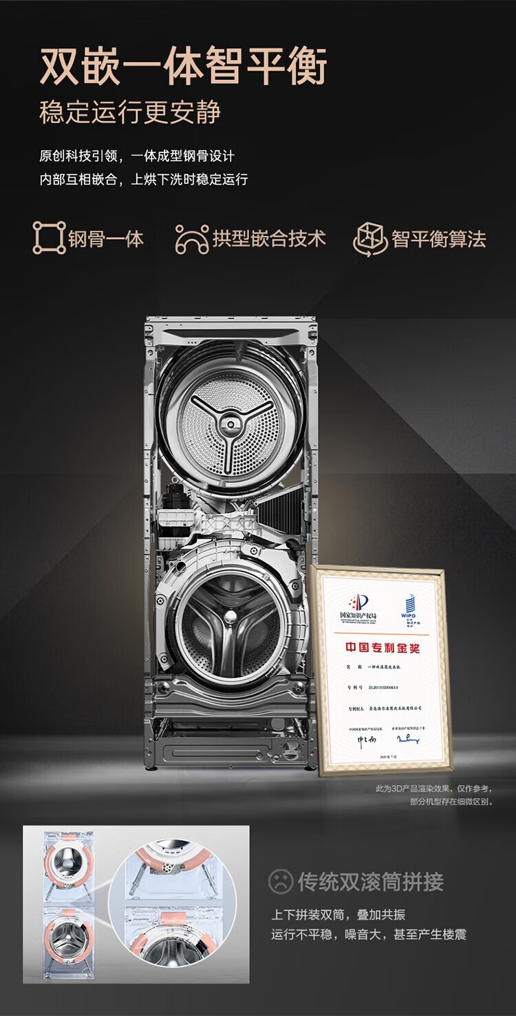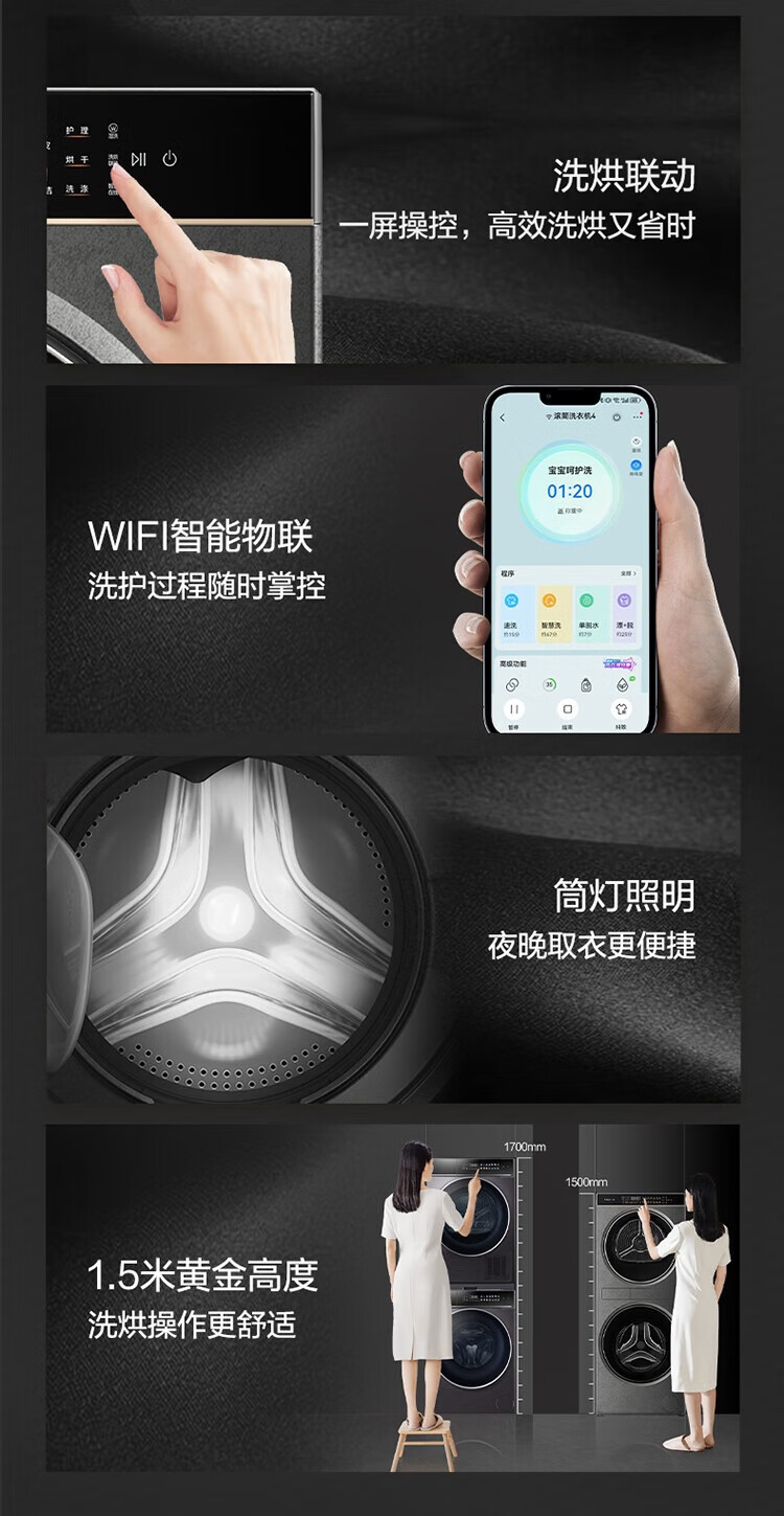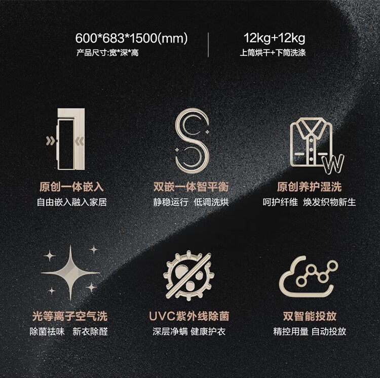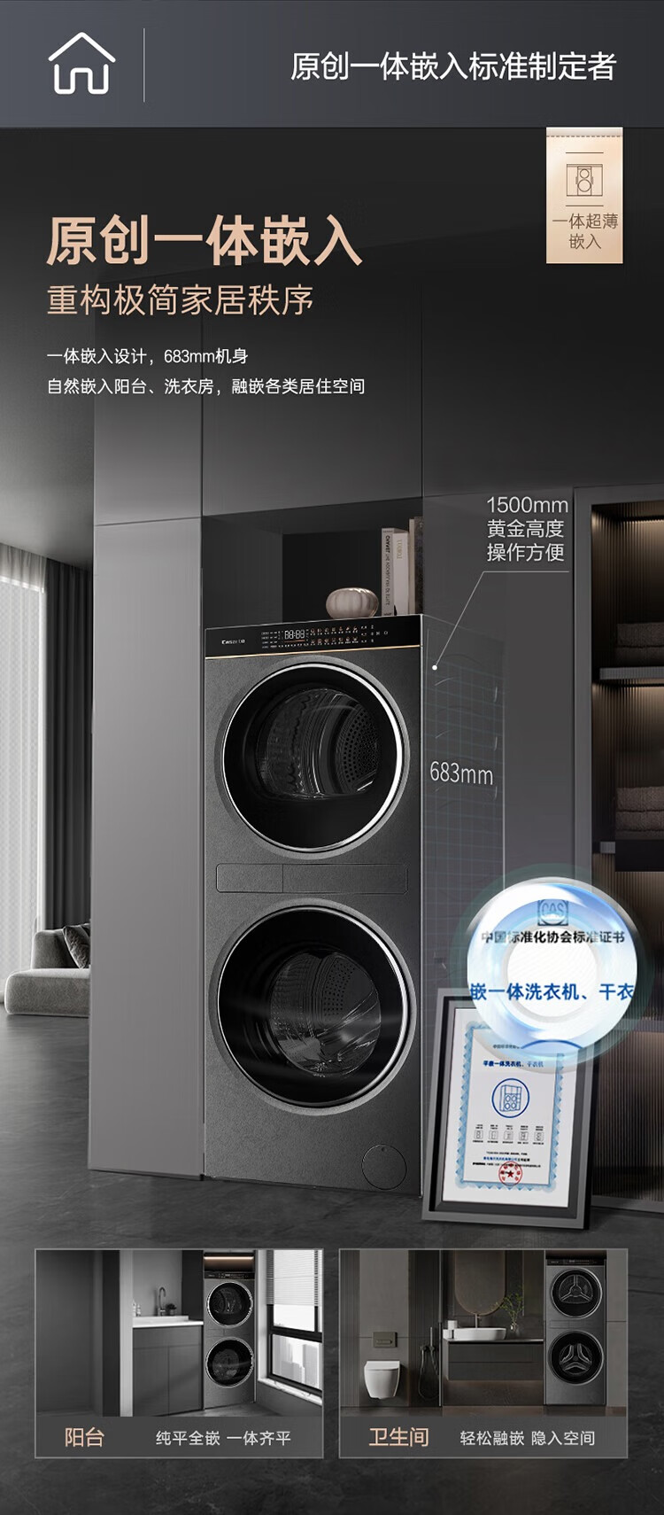 卡萨帝(Casarte)中子和美洗干护一体洗衣机 纯平嵌入 养护空气洗 光等离子除菌CZ B12LWUS12BHBU1