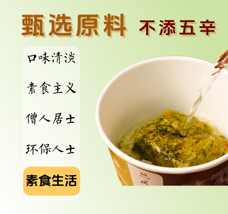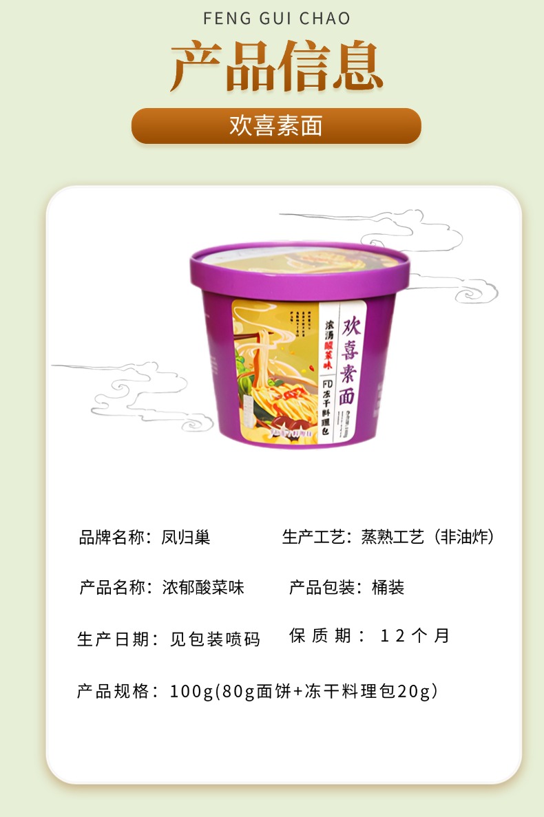 欢喜素面 非油炸素食方便面 100g/桶 不含五辛 酸菜口味凤归巢 冻干汤料