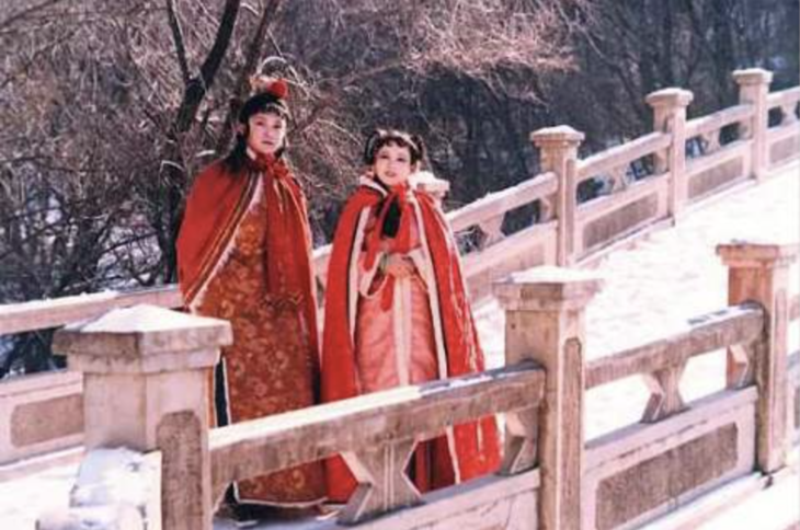 红楼梦第五十回,冰天雪地里,宝钗的堂妹薛宝琴披着贾母送的凫靥裘,火红火红,用野鸭子脸颊上小细毛毛制作,站在雪地里,丫鬟抱着梅花。这是红楼梦里的名场面之一。