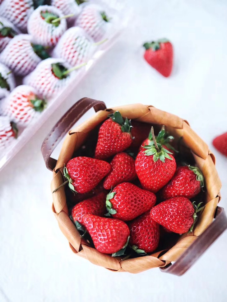 草莓还是来自去年的老果园,今年也是我们合作的第4年,来自丹东草莓的核心产区东港。品种是1999年就从日本引进的“红颜”,以香气馥郁果味浓著称。我们选择了99草莓的头茬大果。模样标致、香味突出。送给亲友,是一份甜蜜的礼物。