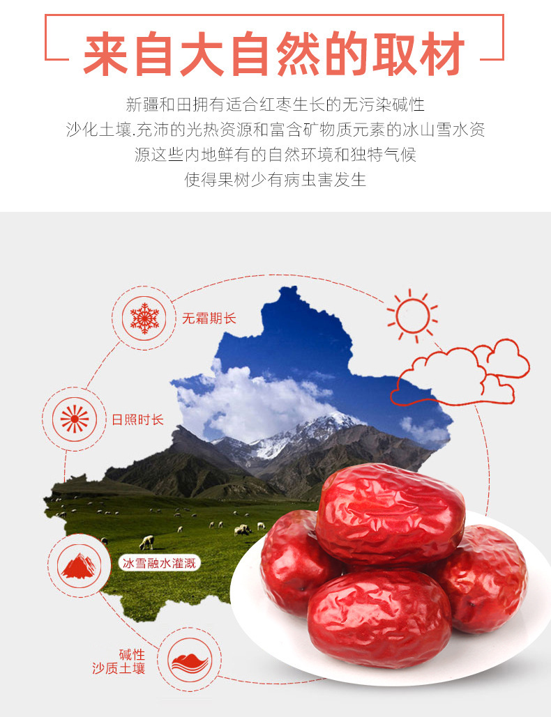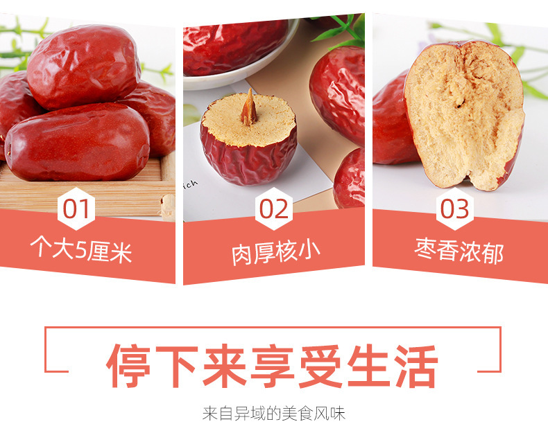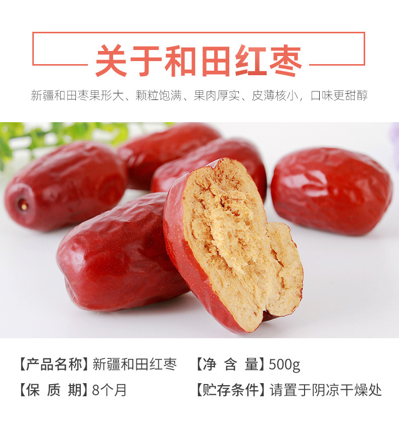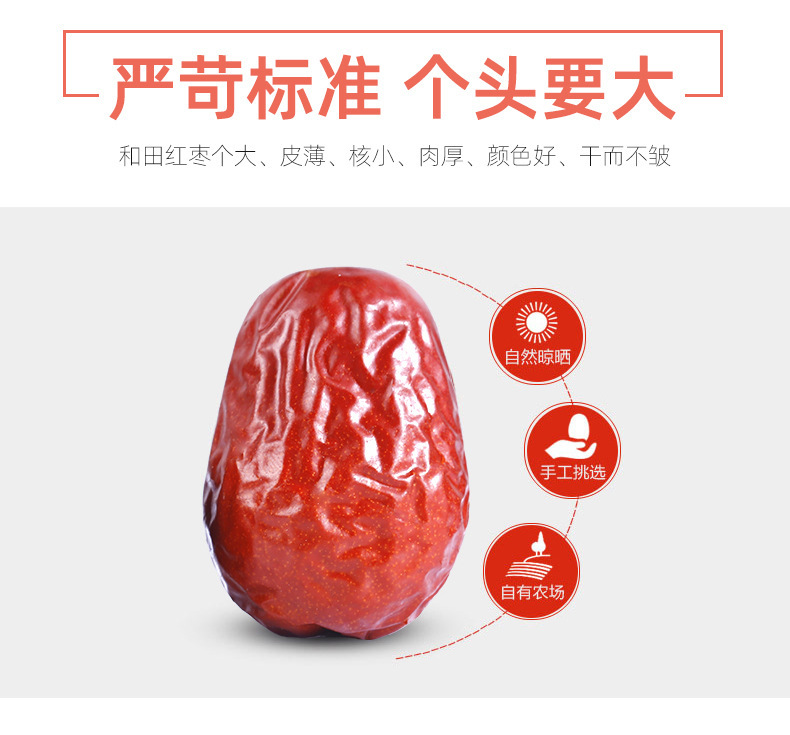 【皮薄肉厚!新疆和田红枣】新疆和田枣果形大、颗粒饱满、果肉厚实、皮薄核小,口味更甜醇,特产骏枣零食大枣,干果煲粥煮汤大红枣L