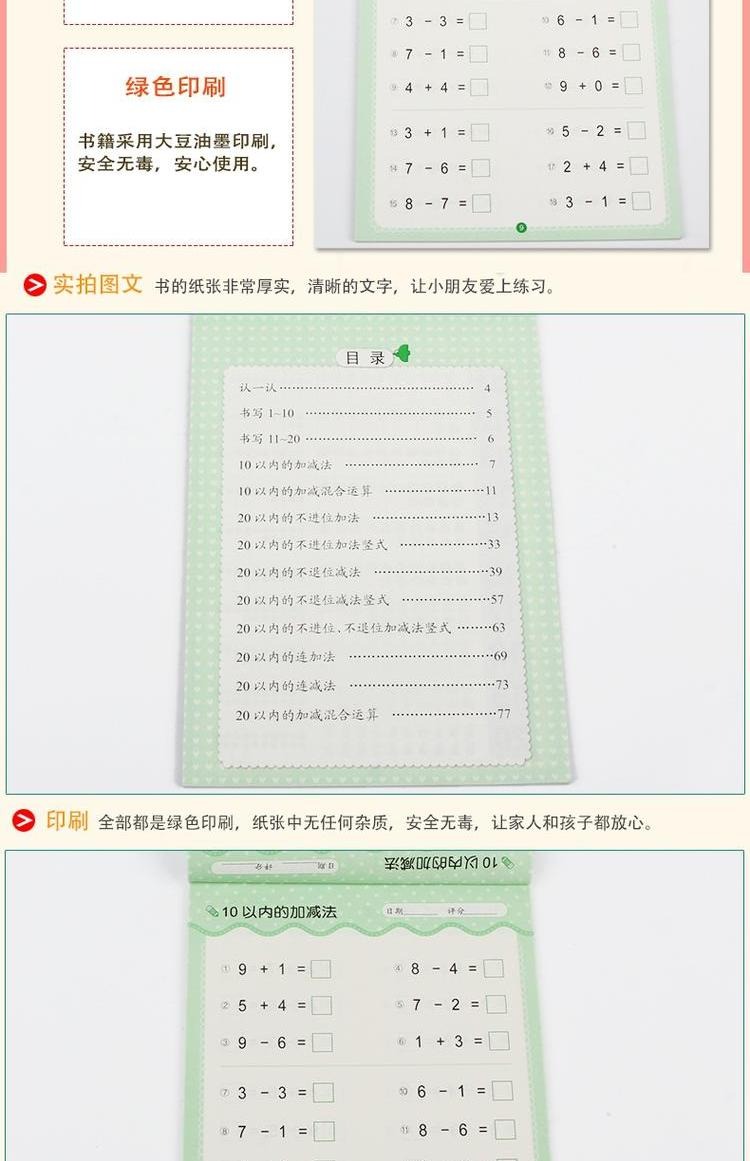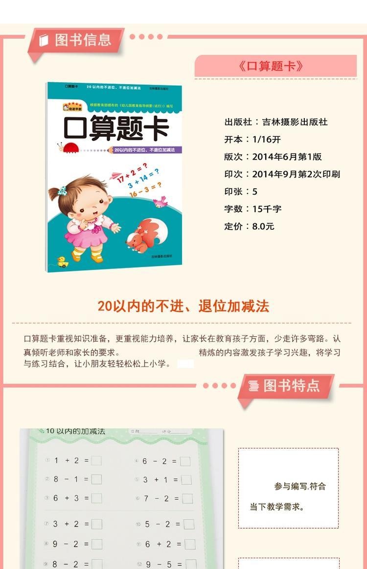 口算题卡 20以内的不进位不退位加减法 儿园学前班幼儿数学教材 幼升小入学准备 3-4-5-6岁儿童图书幼儿学数学 儿童早教书籍图书