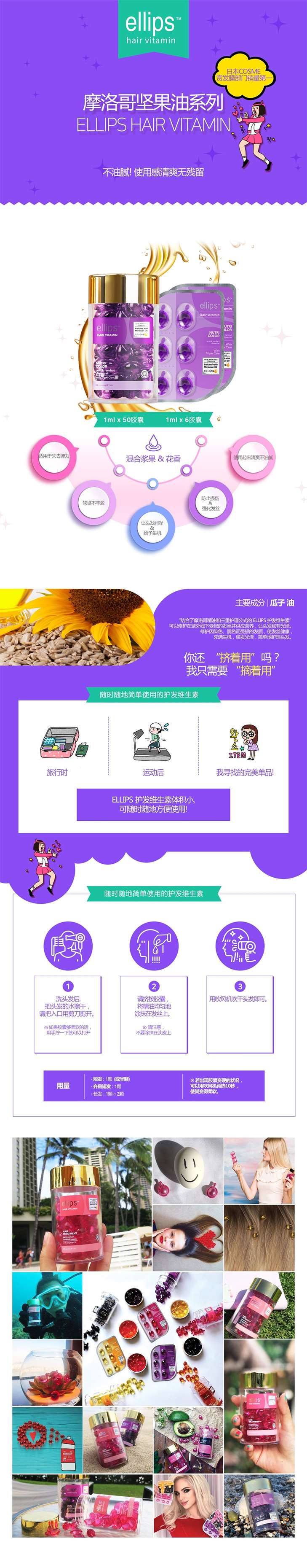 ELLIPS HAIR VITAMIN NUTRI COLOR 护发精油胶囊 (6 CAPSULES) 2PJPY带授权招加盟代理